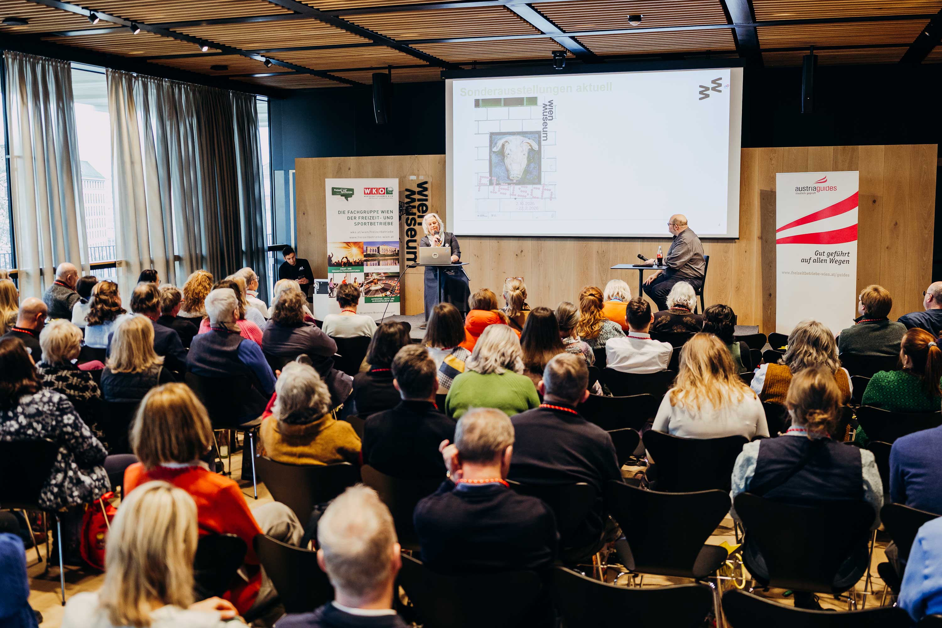 Unter dem Motto "Unsere Partner im Fokus" fand zwischen 07. und 09.01.2026 der 34. Kongress der Österreichischen Fremdenführer:innen in Wien statt. Mit viel Engagement hat die Fachgruppe Wien der Freizeit- und Sportbetriebe ein interessantes und vielseitiges Programm gestaltet, das für über 100 Guides, die teilweise weite Anreisen auf sich genommen haben, ansprechende Highlights bereitgehalten hat.