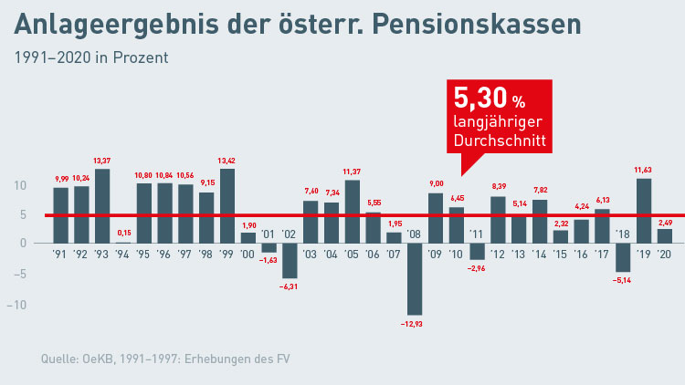 Der Fokus auf ein einzelnes Quartal oder Jahr hat keine Aussagekraft, weil Pensionen über Jahrzehnte aufgebaut werden. Das für die Pensionskassen-Kunden besonders wichtige langjährige durchschnittliche Jahresergebnis über 30 Jahre liegt inklusive des Jahres 2020 bei plus 5,30 Prozent pro Jahr.
