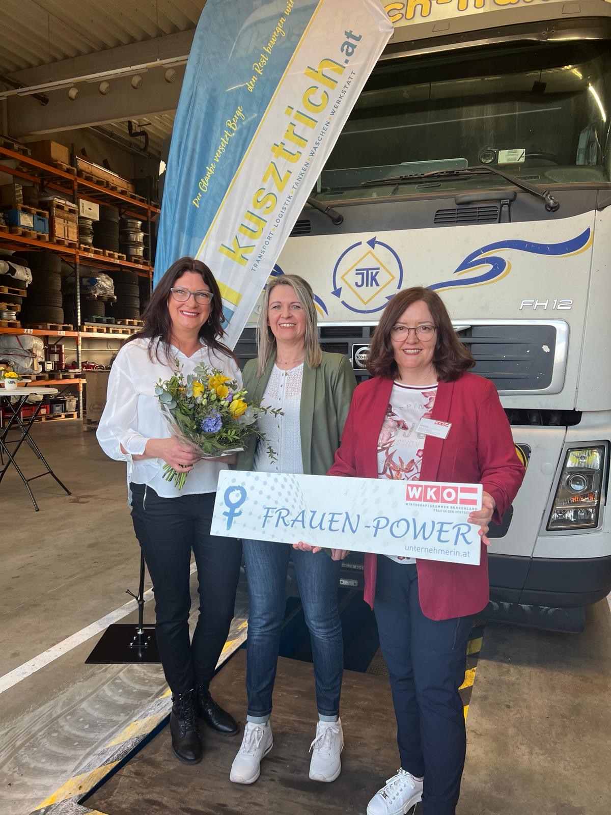 Mit der Veranstaltungsreihe „Das Netz der Region“ war Frau in der Wirtschaft war zu Gast im Transportunternehmen Kusztrich GmbH in Potzneusiedl. Über ihre vielfältigen Aufgaben erzählten die Inhaber Sabrina Mikula und Manuel Kusztrich.