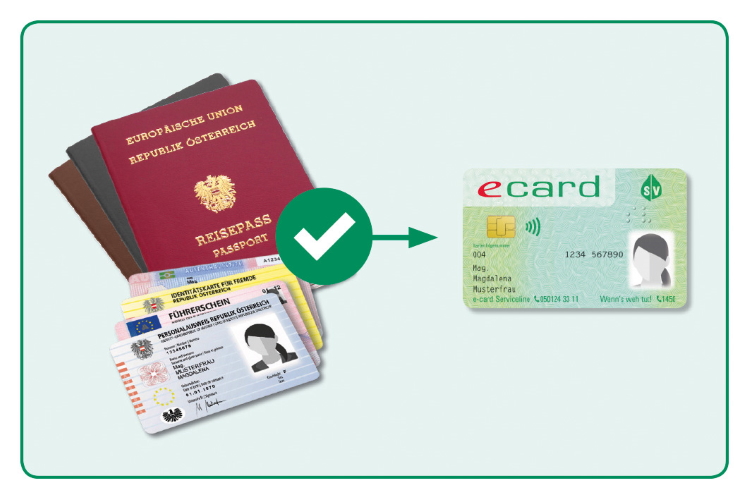 Das Foto muss persönlich und unter Vorlage der alten e-card, eines amtlichen Lichtbildausweises und eines Staatsbürgerschaftsnachweises zur zuständigen Registrierungsstelle gebracht werden.