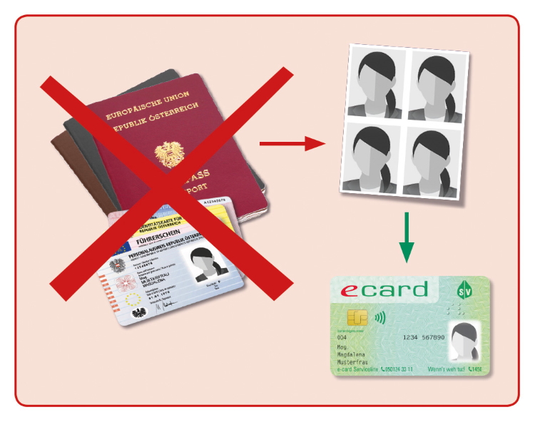 Liegt von versicherten Personen kein Foto aus einem der Register vor, muss ein Foto für die e-card gebracht werden.