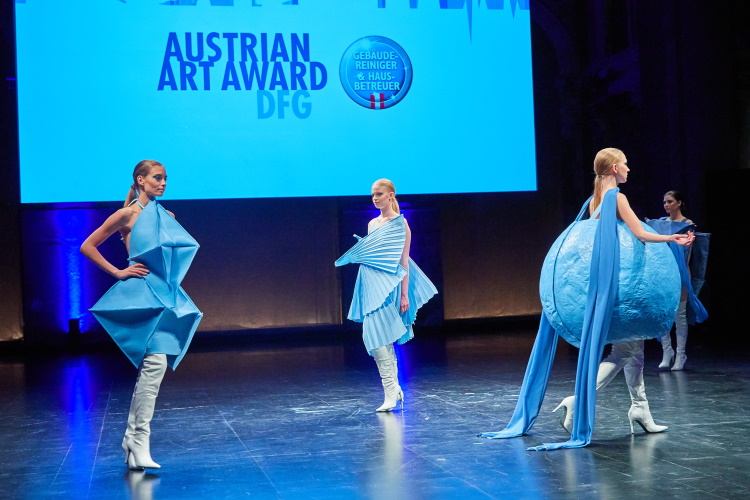 Ein weiterer Höhepunkt des Abends war die Präsentation der attersesierten Gewinner – Entwürfe der Studentinnen und Studenten der Modeschule Schloss Hetzendorf in der Kategorie „Angewandte Kunst“ aus den Bereichen Modedesign und Grafik bereits bei der Pressekonferenz in der Modeschule Hetzendorf am 26. Juni bewertet und gewählt wurden.