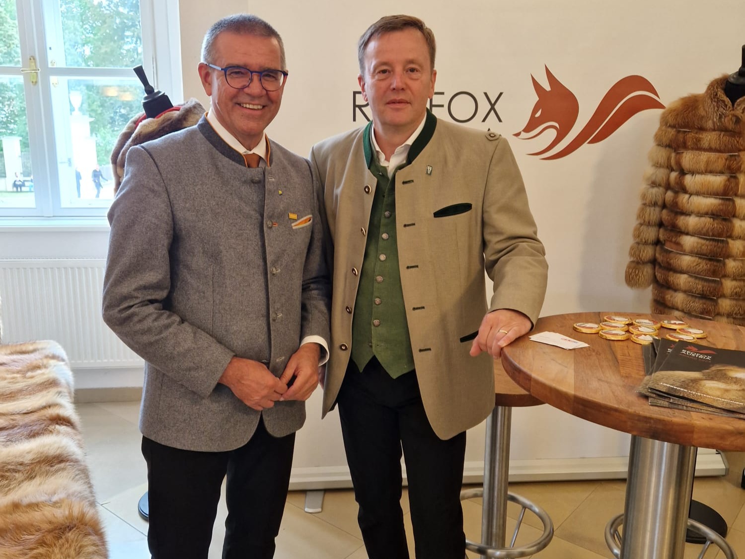 Bei der Veranstaltung wein.wild.weinviertel am 24.9.2023 in Schloss Wilfersdorf präsentierten die Österreichischen Kürschner, vertreten durch BIM Philipp Sladky und Mag. Wolfgang Muth, das Projekt Red Fox Austria. Am Stand konnten LAbg Ing. Manfred Schulz, Landesjägermeister-Stv. Johannes Unterhalser, Bürgermeister Josef Tatzber sowie Vizebürgermeister Gerhard Strasser begrüßt werden.