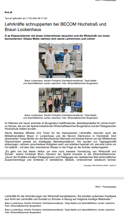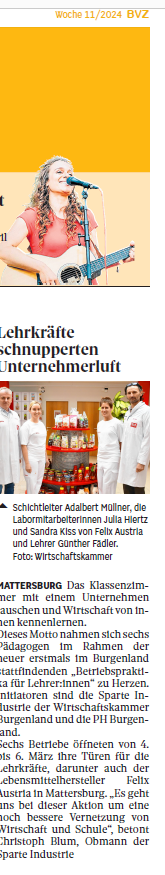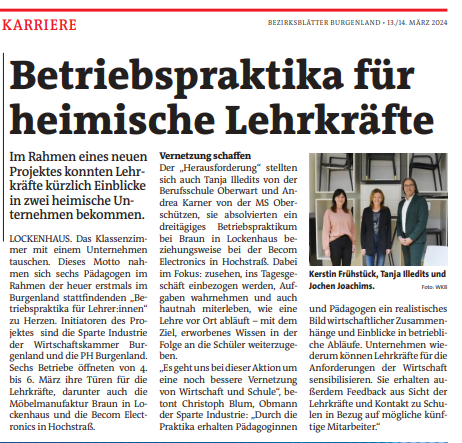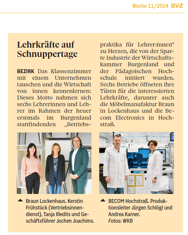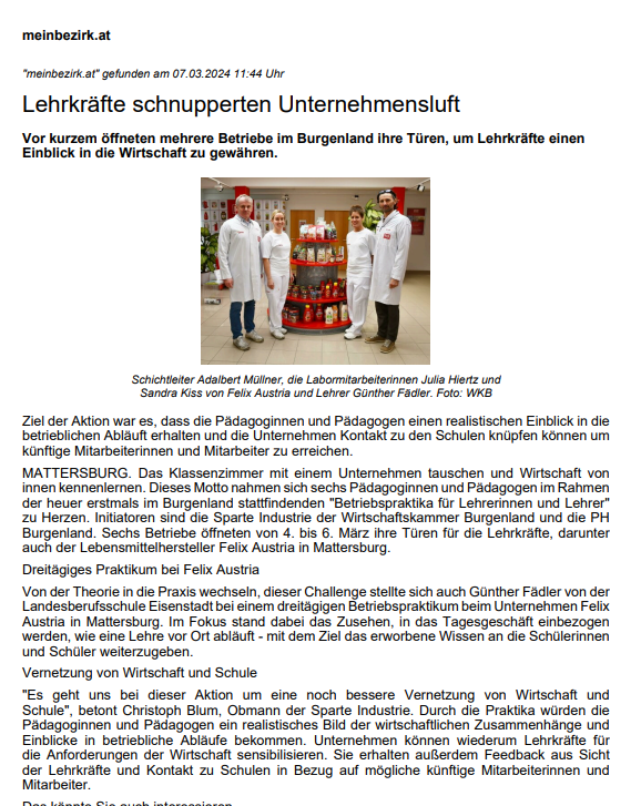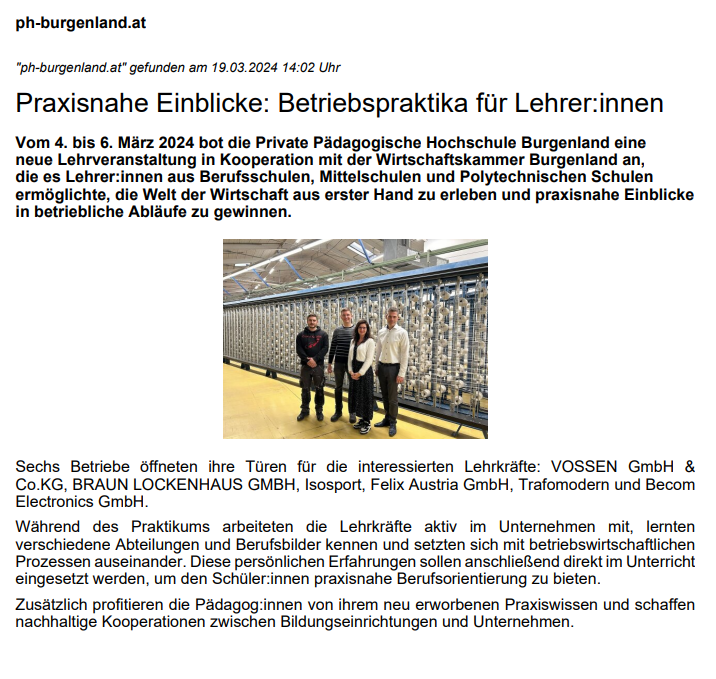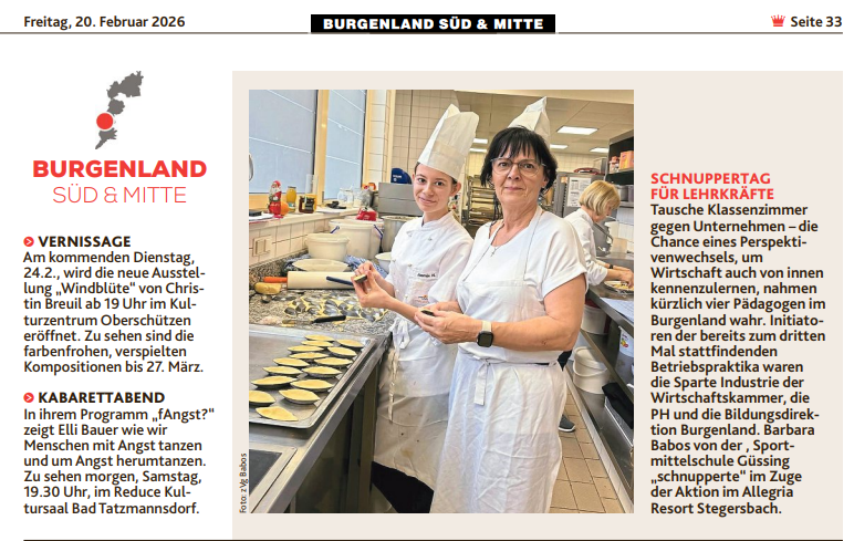 Die Aktion „Betriebspraktika für Lehrer:innen“ findet in Kooperation mit der PH Burgenland und der Bildungsdirektion Burgenland statt und wird als Weiterbildung angerechnet.
