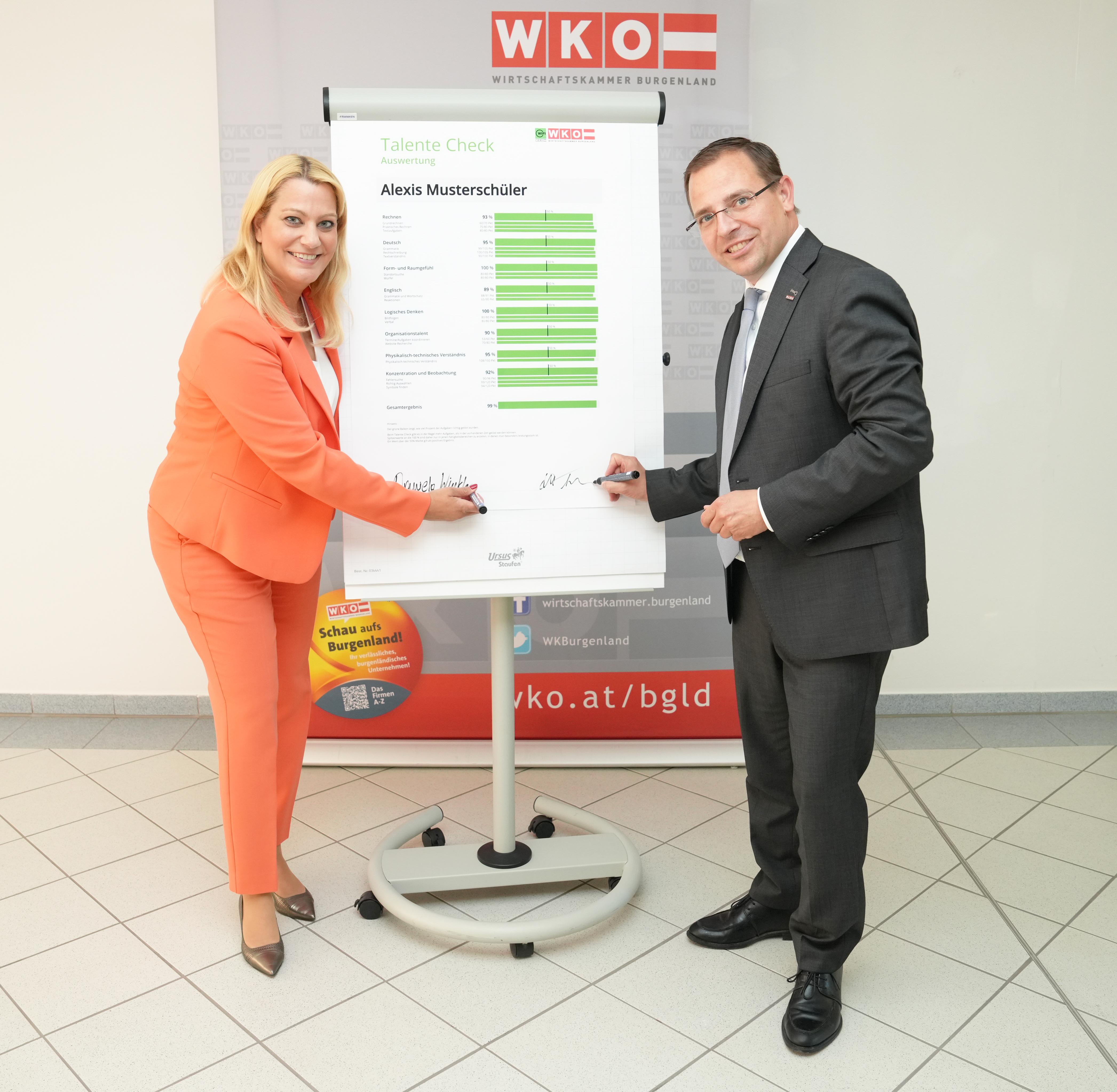 Bildungslandesrätin Daniela Winkler und Wirtschaftskammerpräsident Andreas Wirth. // Foto © WKB