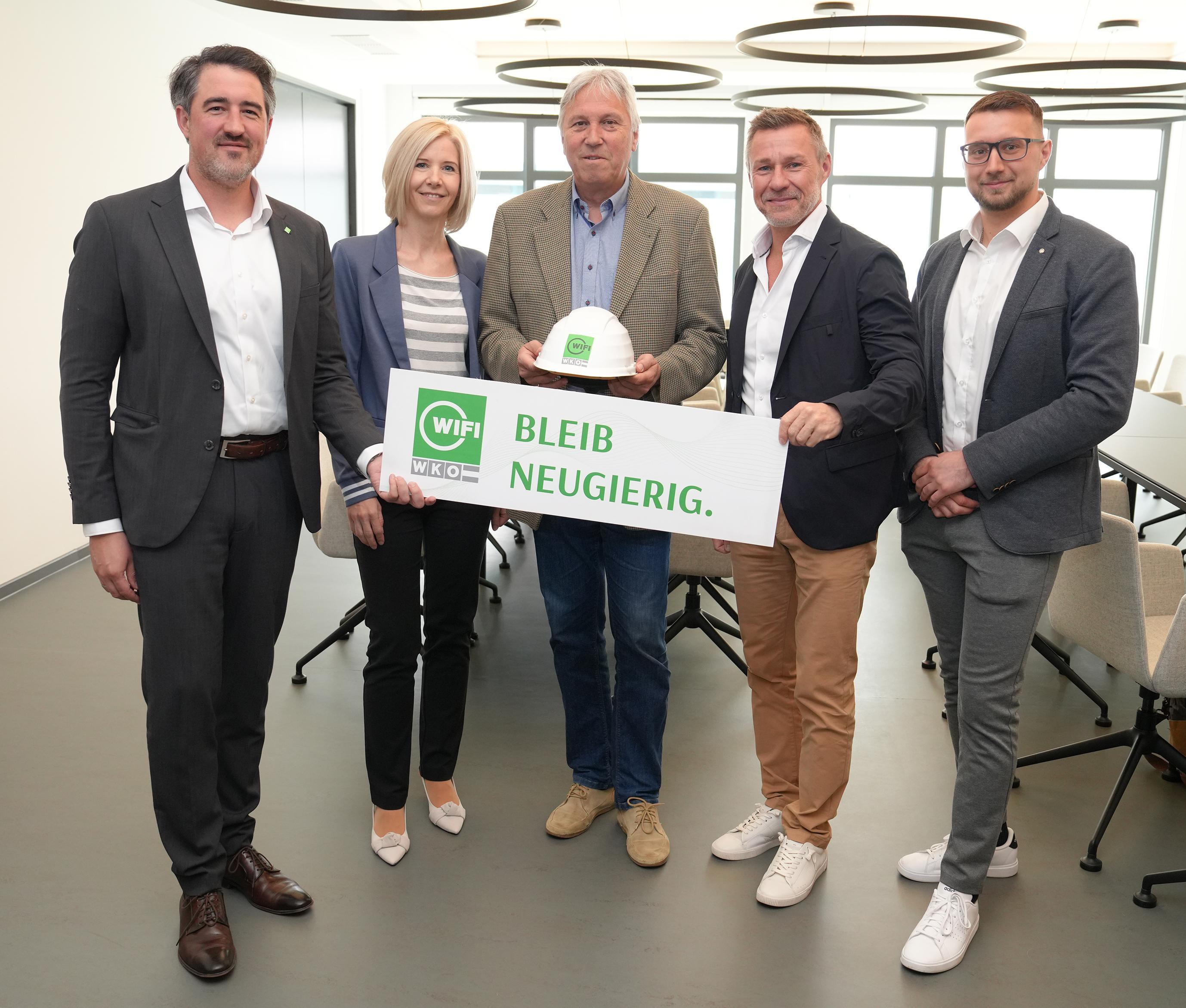 Bildtext: WIFI-Institutsleiter Mag. Thomas Jestl, Irmgard Grass, Innungsmeister KommR Ing. Bernhard Breser, Geschäftsführer Michael Windisch und Patrick Zenz von der Bauakademie Steiermark-Burgenland