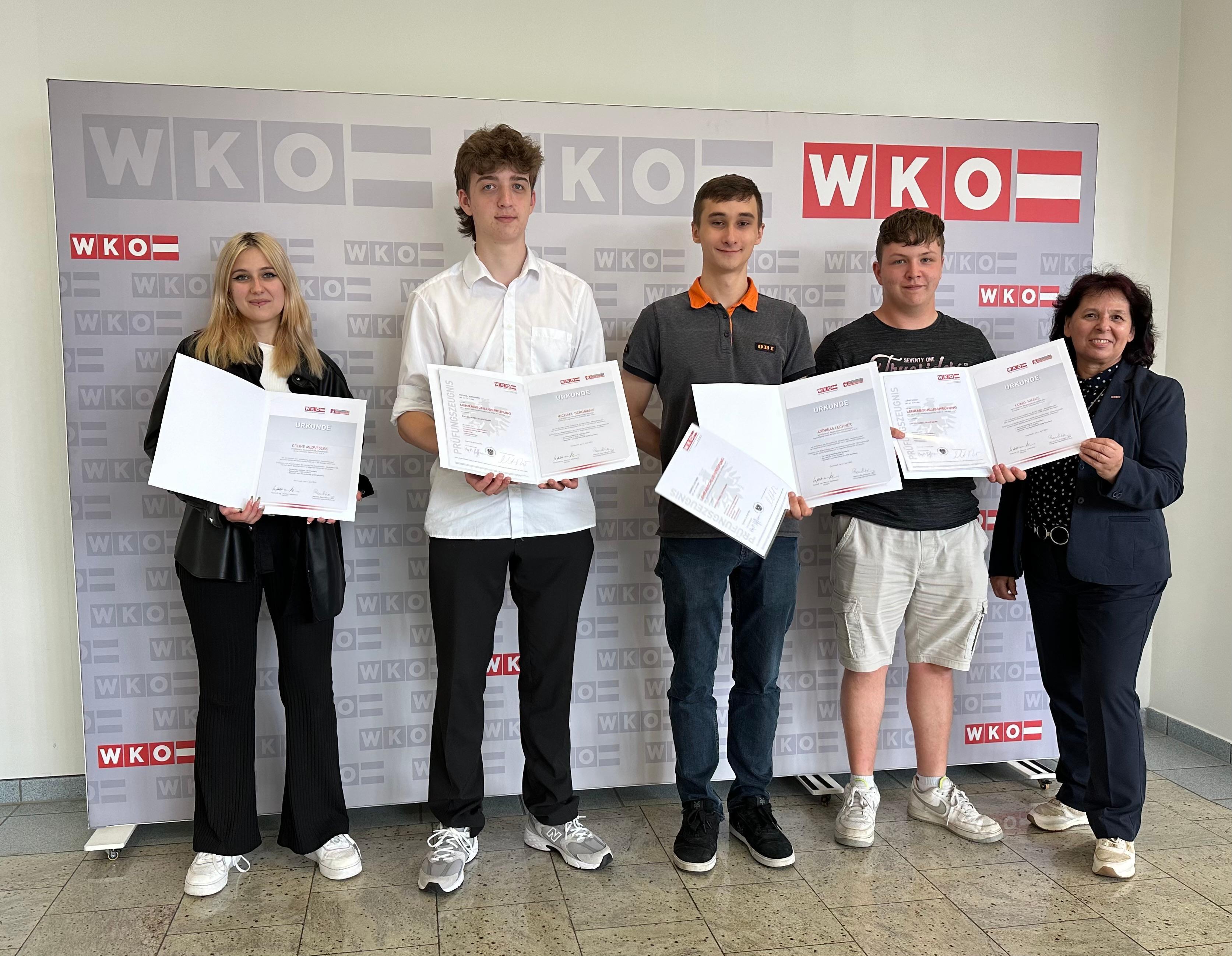 Vier Lehrlinge mit dem Ausbildungsschwerpunkt „Bauproduktehandel“ absolvierten kürzlich die Lehrabschlussprüfung in der Wirtschaftskammer Burgenland.