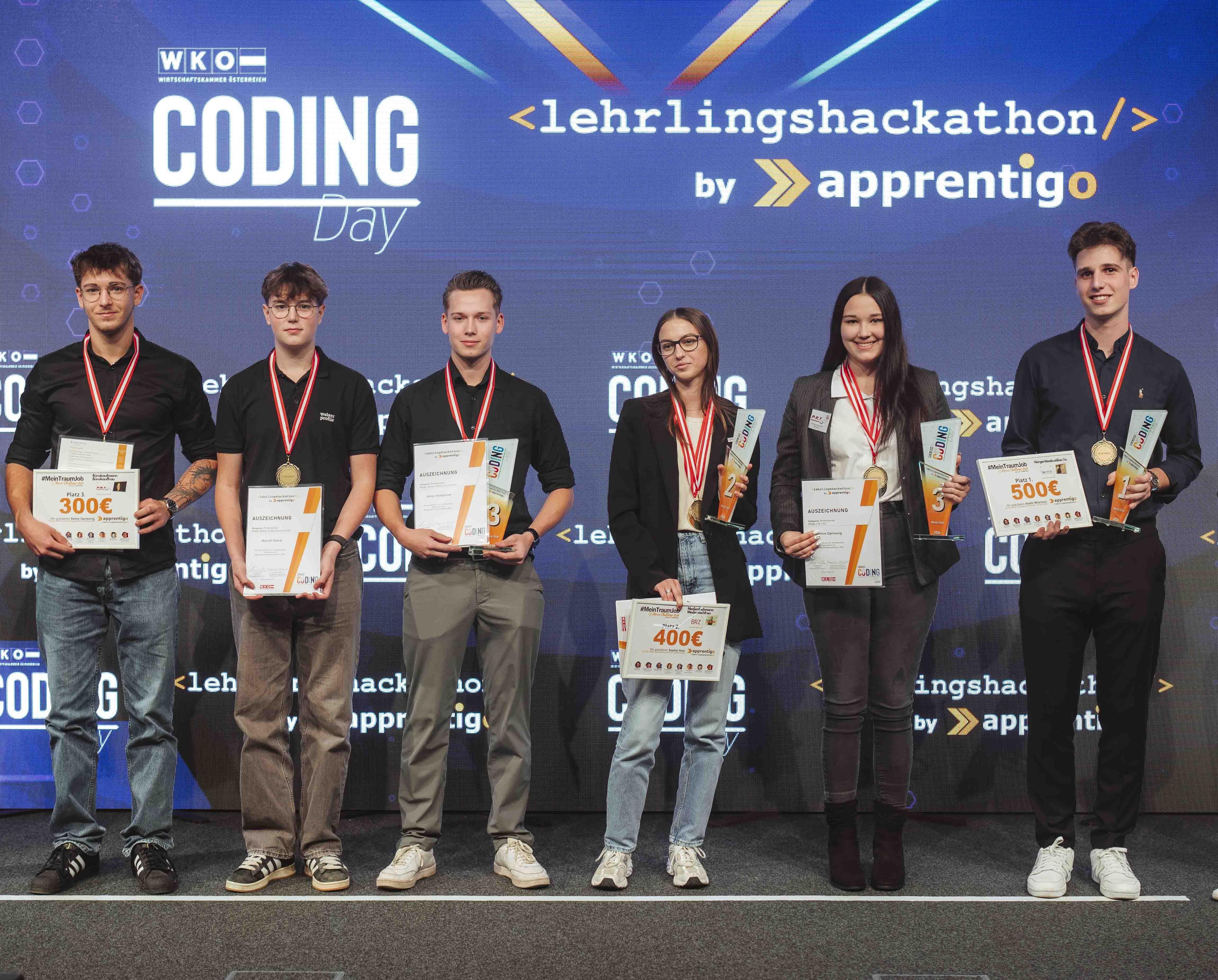 In allen Bundesländern boten auch heuer wieder die Lehrlingshackathons der Wirtschaftskammer gemeinsam mit der Firma „apprentigo“ jungen Auszubildenden die Gelegenheit, sich an digitalen Tools auszuprobieren sowie ihre digitalen Fähigkeiten zu verbessern. Insgesamt mehr als 580 Teilnehmende österreichweit entwickelten innovative App-Ideen – eine Rekordbeteiligung. Die Siegerprojekte wurden kürzlich beim WKÖ Coding Day in Wien geehrt.