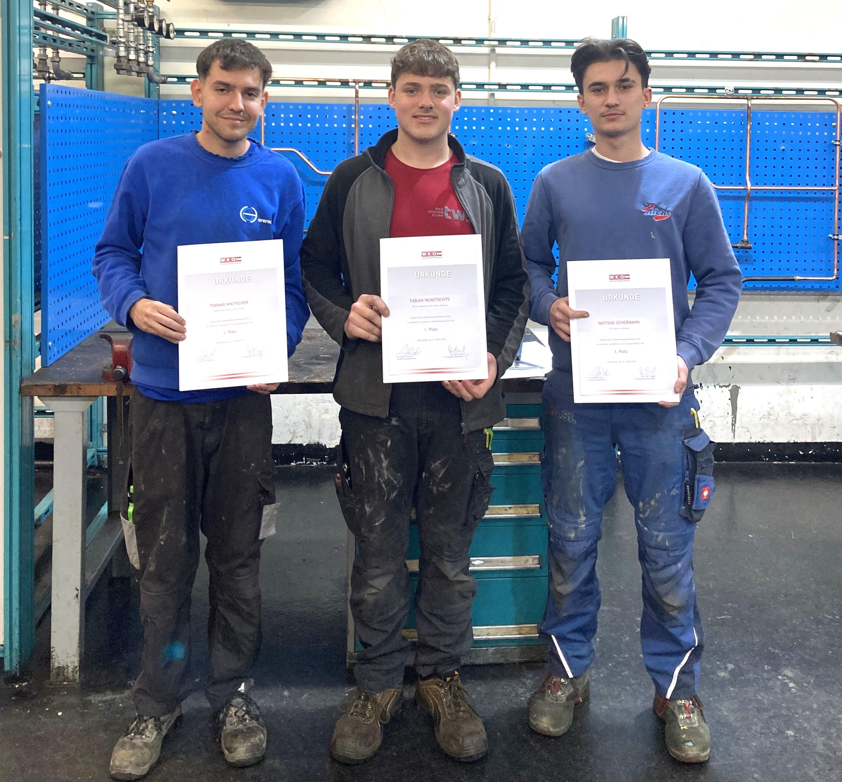 Der Sieg ging an den Eltendorfer Fabian Wukitsevits vom Lehrbetrieb TWS Heizungs-Sanitär & Service GmbH in Deutsch Kaltenbrunn. Platz zwei holte Thomas Nikitscher aus Gerersdorf vom Lehrbetrieb Haustechnik Güssing GmbH vor Mathias Schermann aus Bubendorf vom Lehrbetrieb ASL GmbH, Lockenhaus.