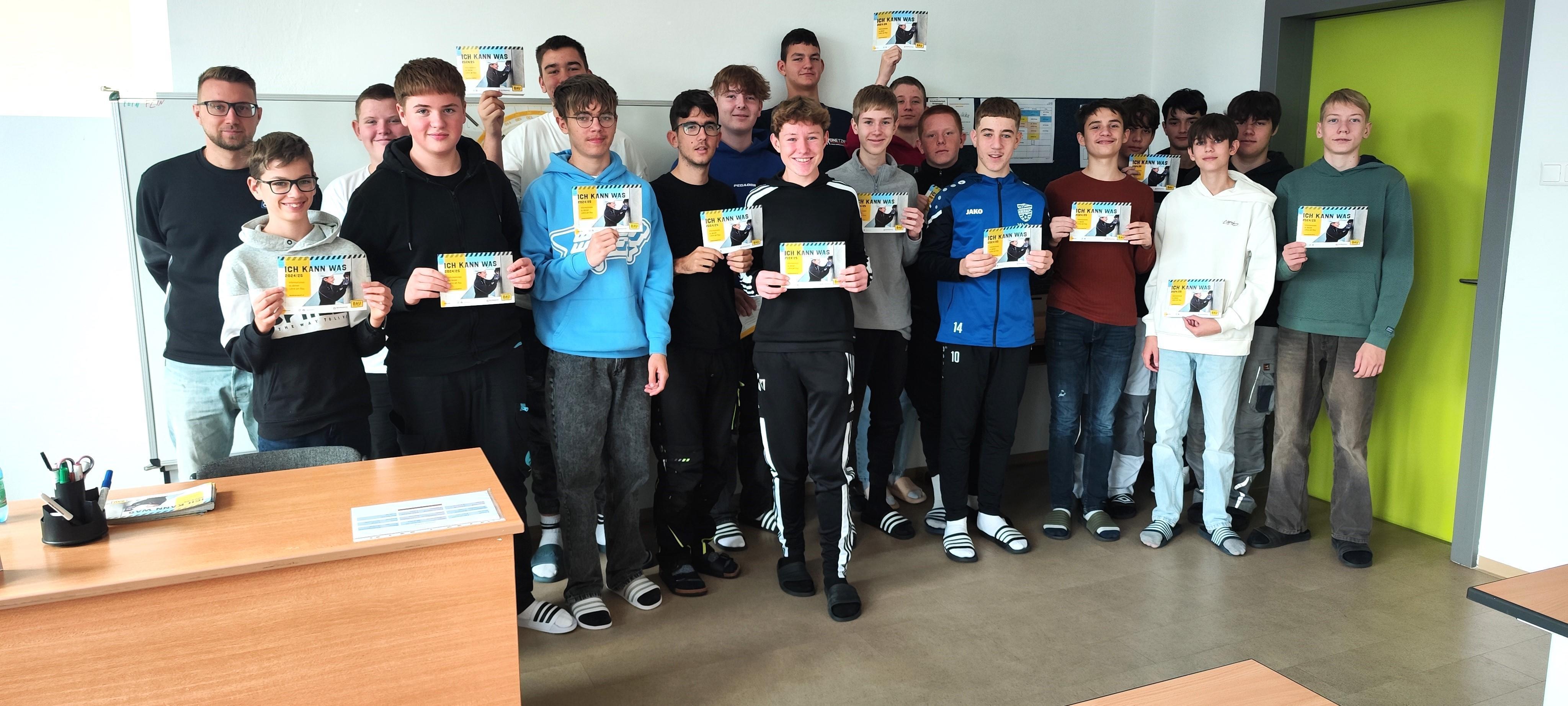 Lehrlingsexperte Patrick Zenz (l.) mit Schülerinnen und Schülern der PTS sowie MS Stegersbach. // Foto © WKB