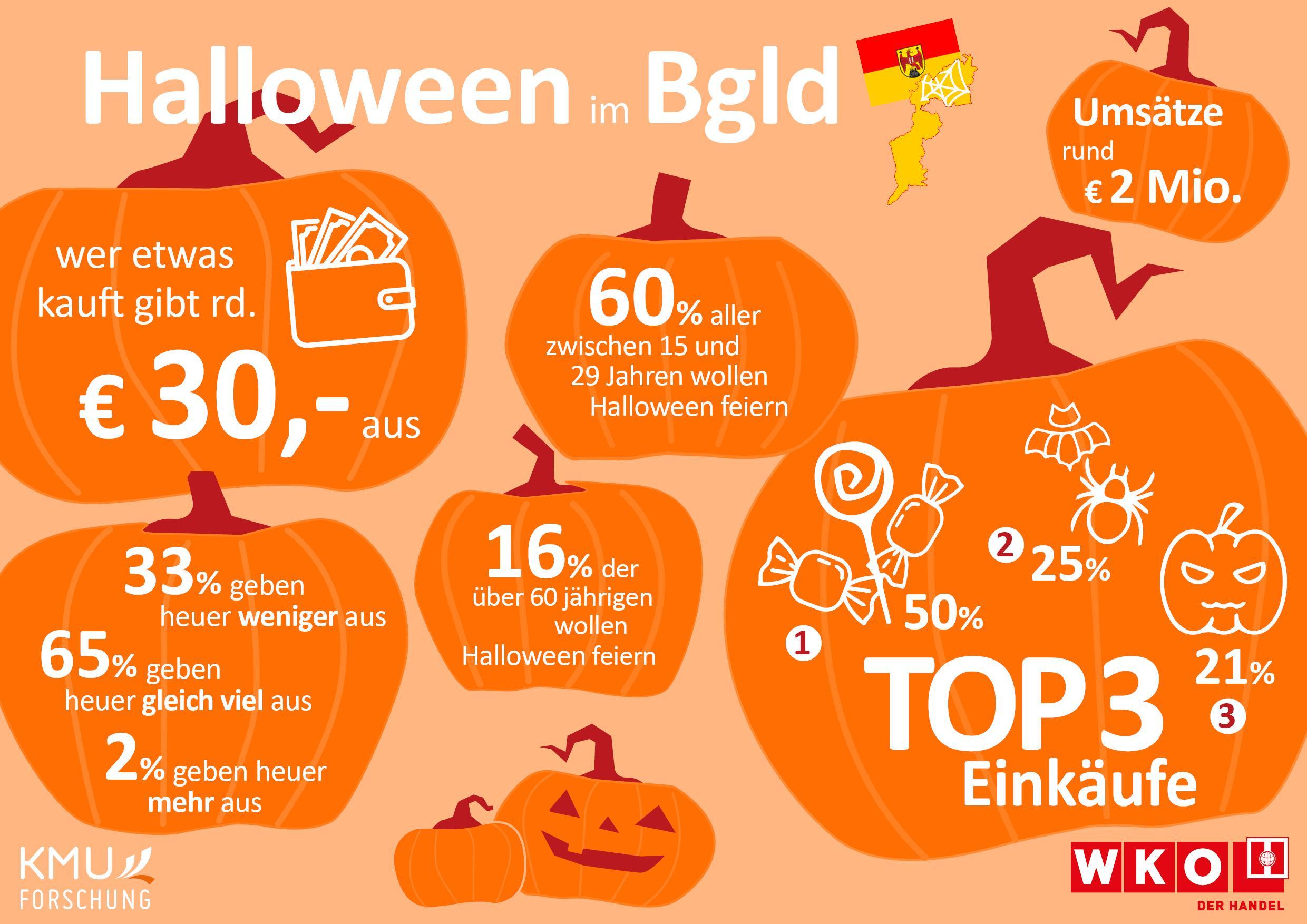 Der von Italien über Amerika nach Europa importierte Brauch erfreut sich längst auch im Burgenland großer Beliebtheit. Der Handel erwartet auch heuer rund um den 31. Oktober wieder einen kleinen Impuls: Immerhin feiern 60 Prozent der unter-30-jährigen Halloween, durchschnittlich werden 30 Euro ausgegeben.