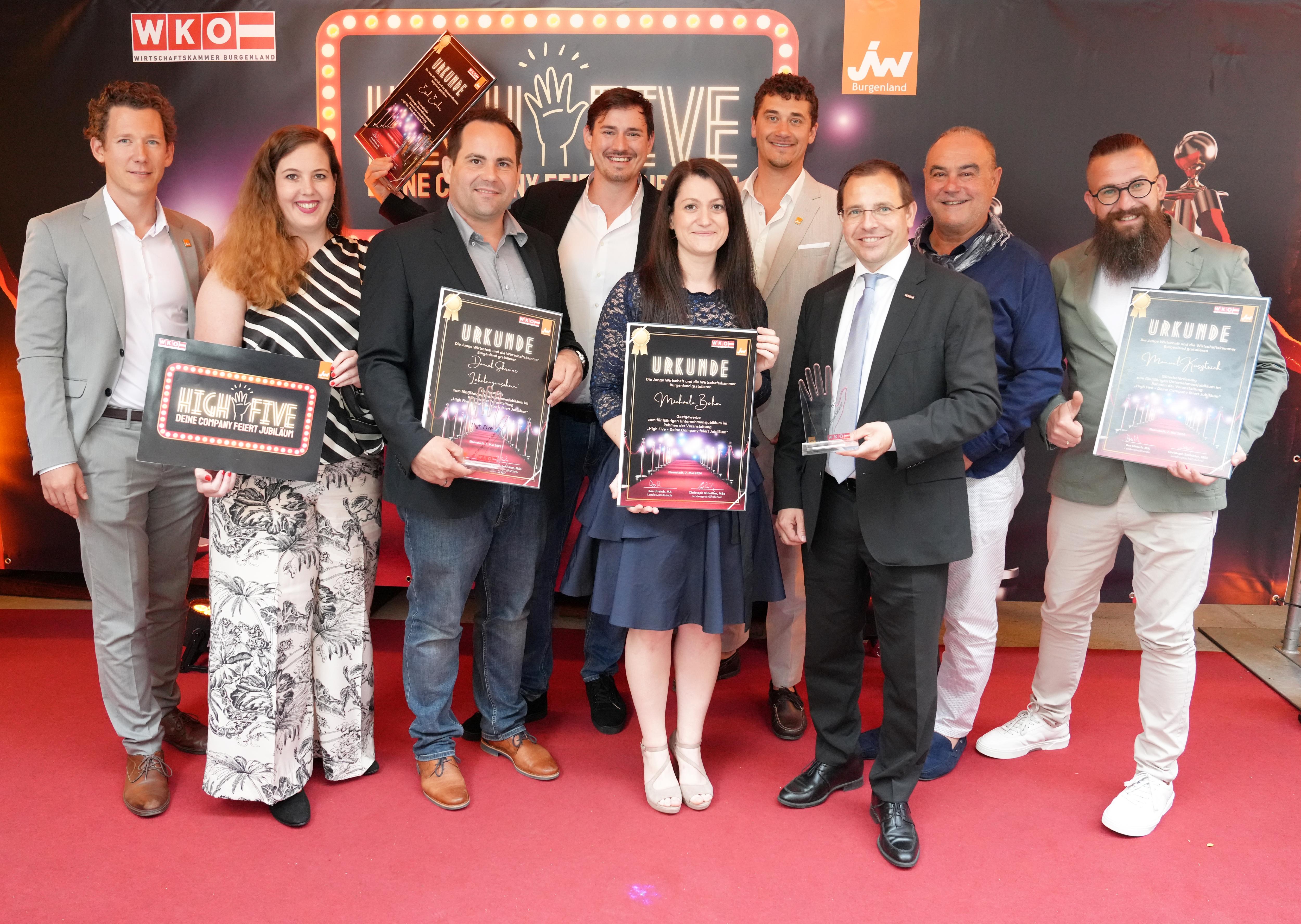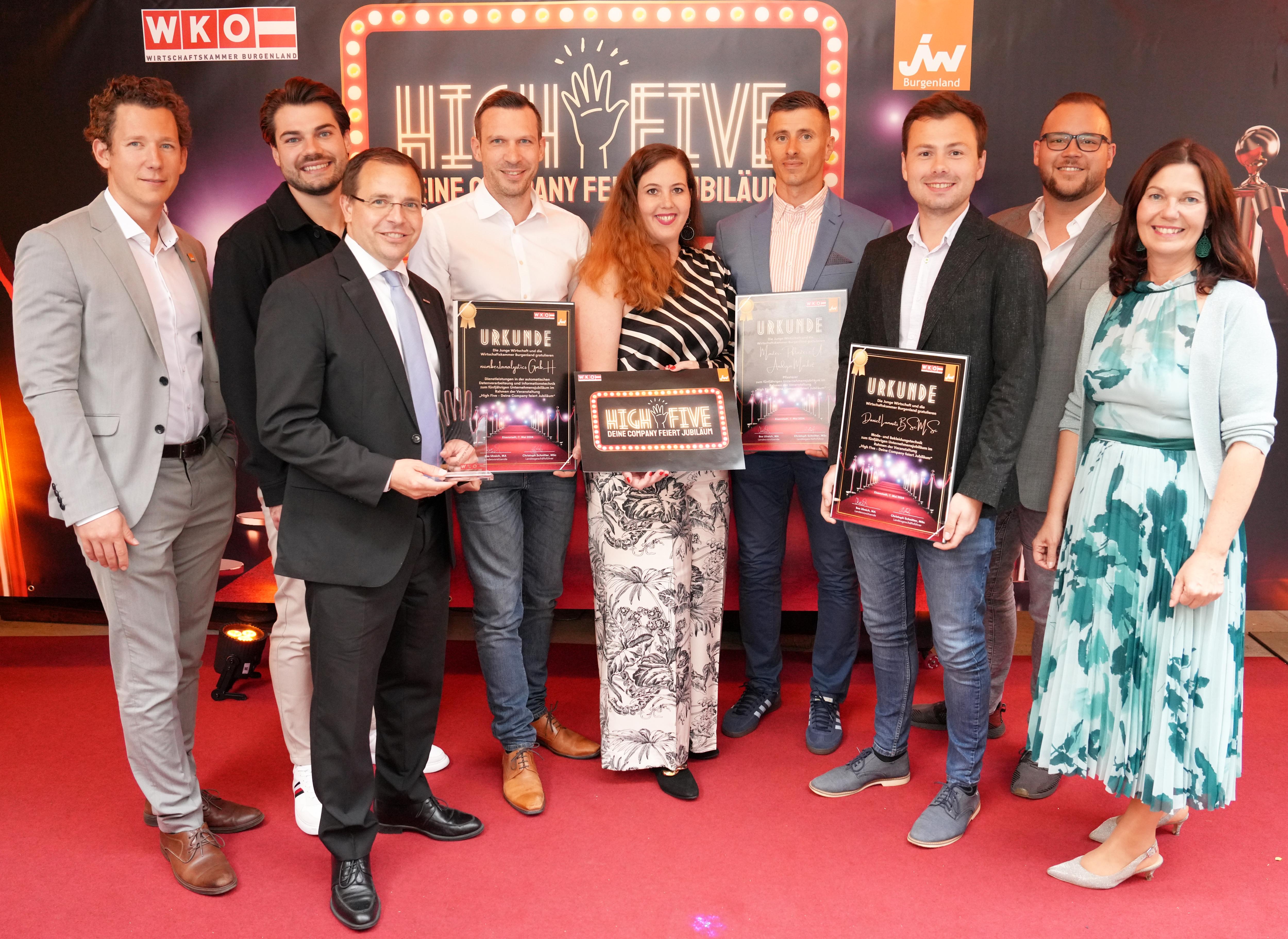 Roter Teppich, Blitzlichtgewitter und ein stimmungsvolles Ambiente bildeten den Rahmen für die kürzliche Veranstaltung „High Five – Deine Company vor den Vorhang“ in Klingenbach. Rund 20 Jungunternehmer, die vor fünf Jahren ihren Betrieb gegründet hatten, wurden dabei mit der Trophäe „High Five“ und einer Urkunde geehrt.