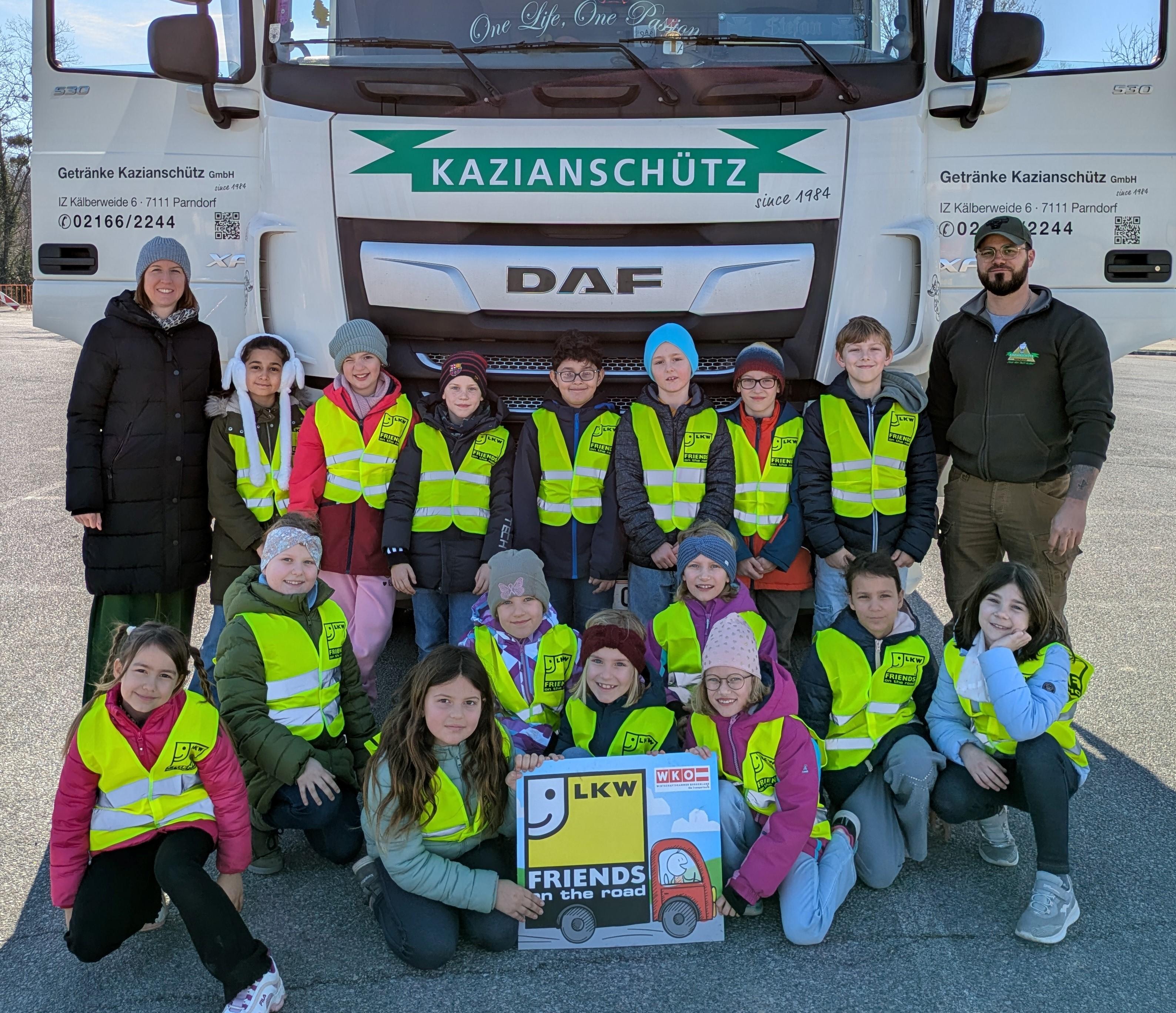 In einem gemeinsamen Projekt der Wirtschaftskammer und der Bildungsdirektion Burgenland sollen den Kindern auf spielerische Art und Weise die wirtschaftliche Bedeutung der Transportwirtschaft und die Gefahren des „toten Winkels“ beim Lkw vermittelt werden.