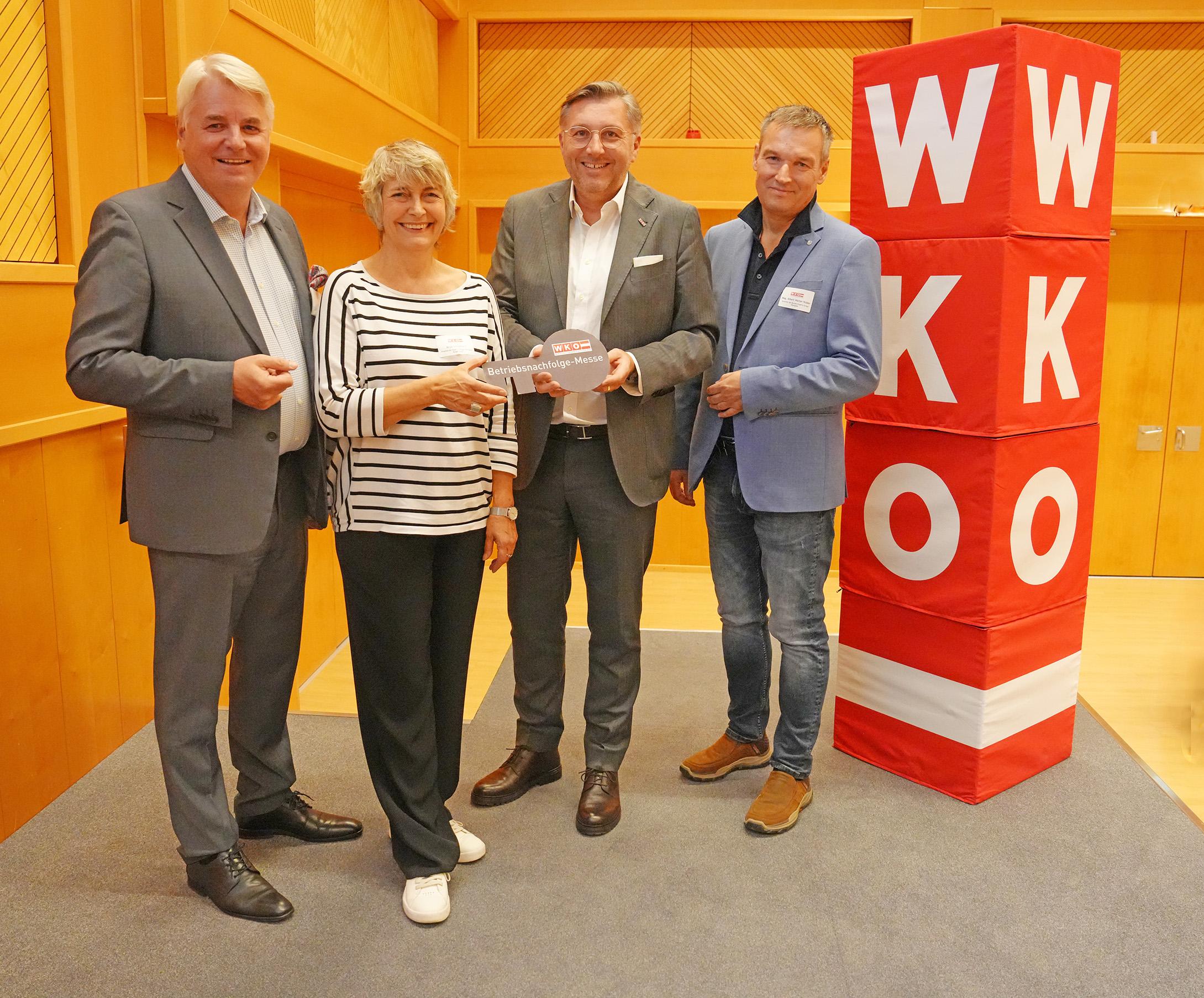 Am Bild: Organisator Toni Ferk, Anja Schoditsch (Mitglied der Experts Group Übergabe Burgenland), Wirtschaftskammerdirektor Harald Schermann, Albert Walter Huber (Sprecher der Bundes-Experts Group Übergabe) // Foto © WKB