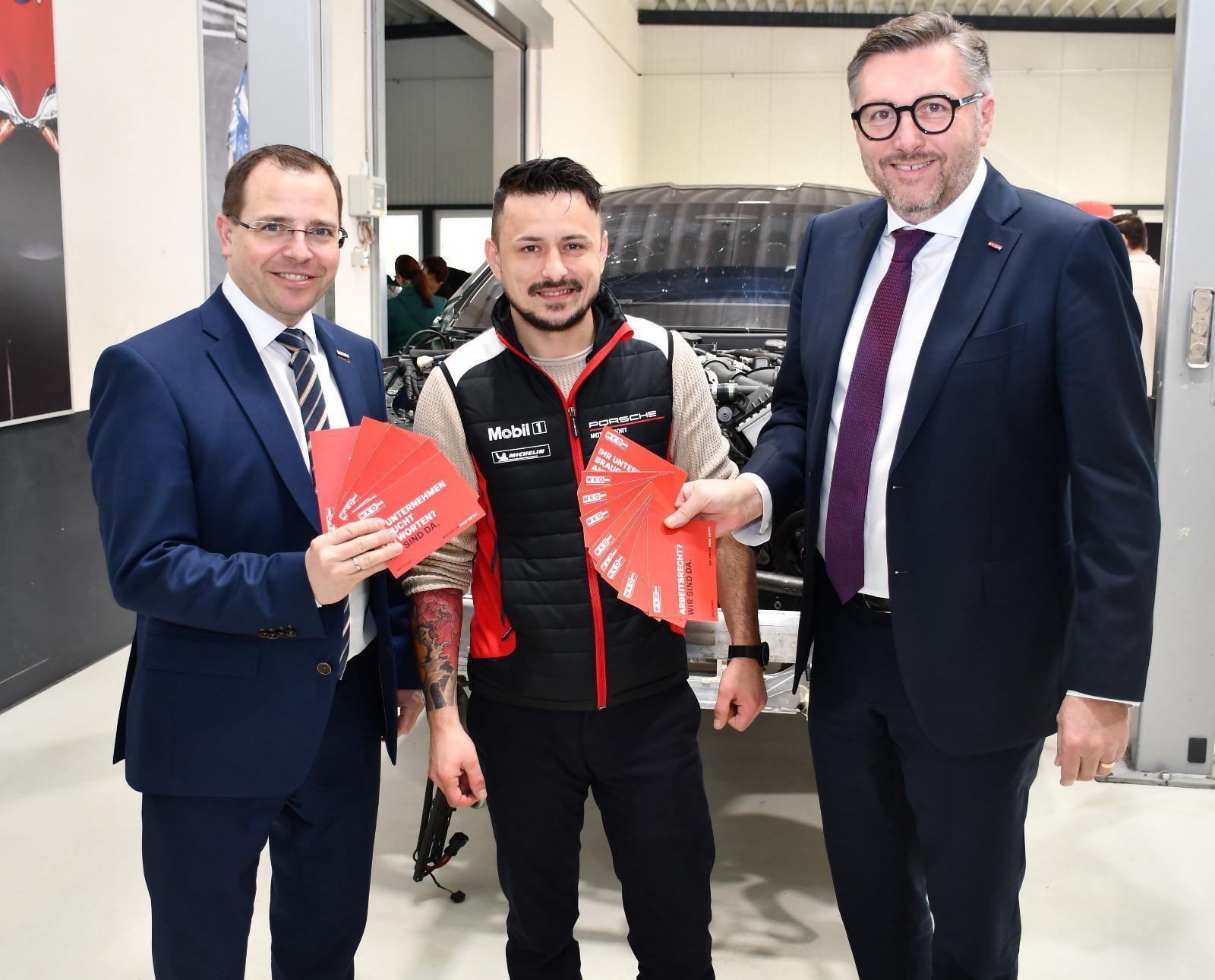 WK-Präsident Andreas Wirth, Ivan Klaric (Karosserie-Center, Pöttelsdorf) und WK-Direktor Harald Schermann (v. l.). // Foto © WKB
