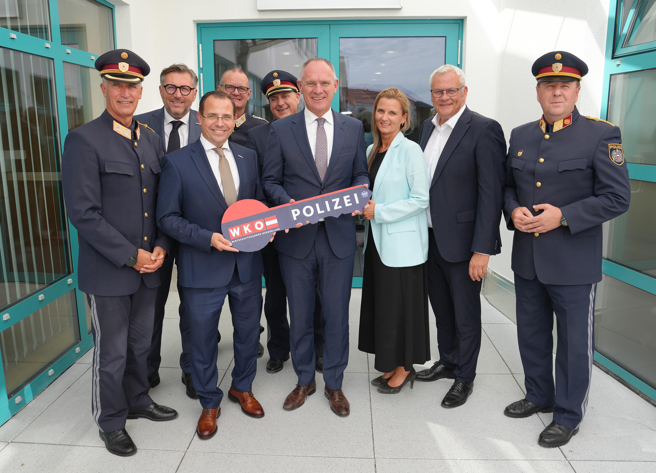 Die Polizeischule in Eisenstadt hat nun offiziell einen zweiten Standort: In der Wirtschaftskammer Burgenland wurden ihr Räumlichkeiten für zwei Ausbildungslehrgänge zur Verfügung gestellt. Die Schlüsselübergabe erfolgte kürzlich an Innenminister Gerhard Karner.