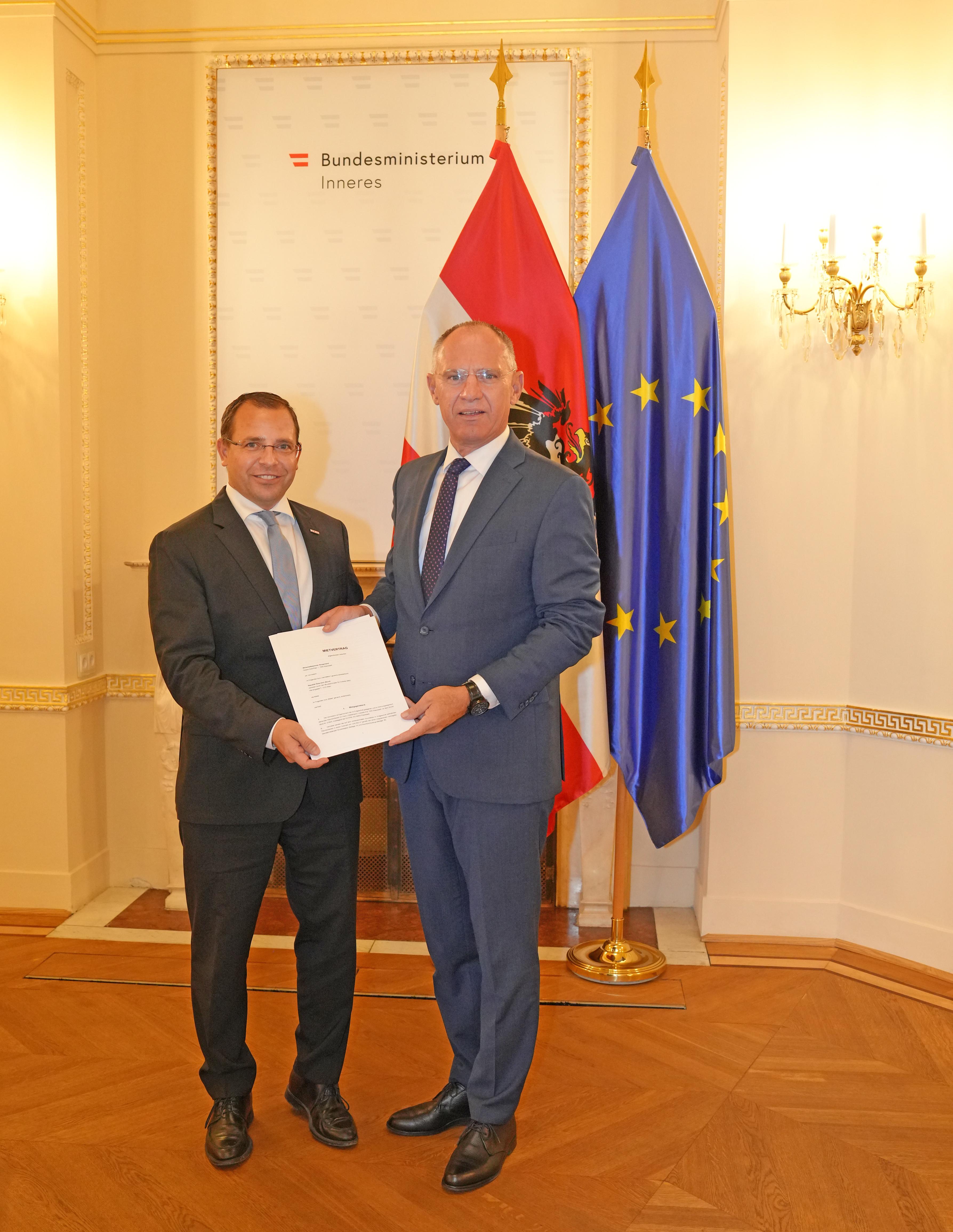Wirtschaftskammerpräsident Andreas Wirth und Minister Gerhard Karner (v. l.).