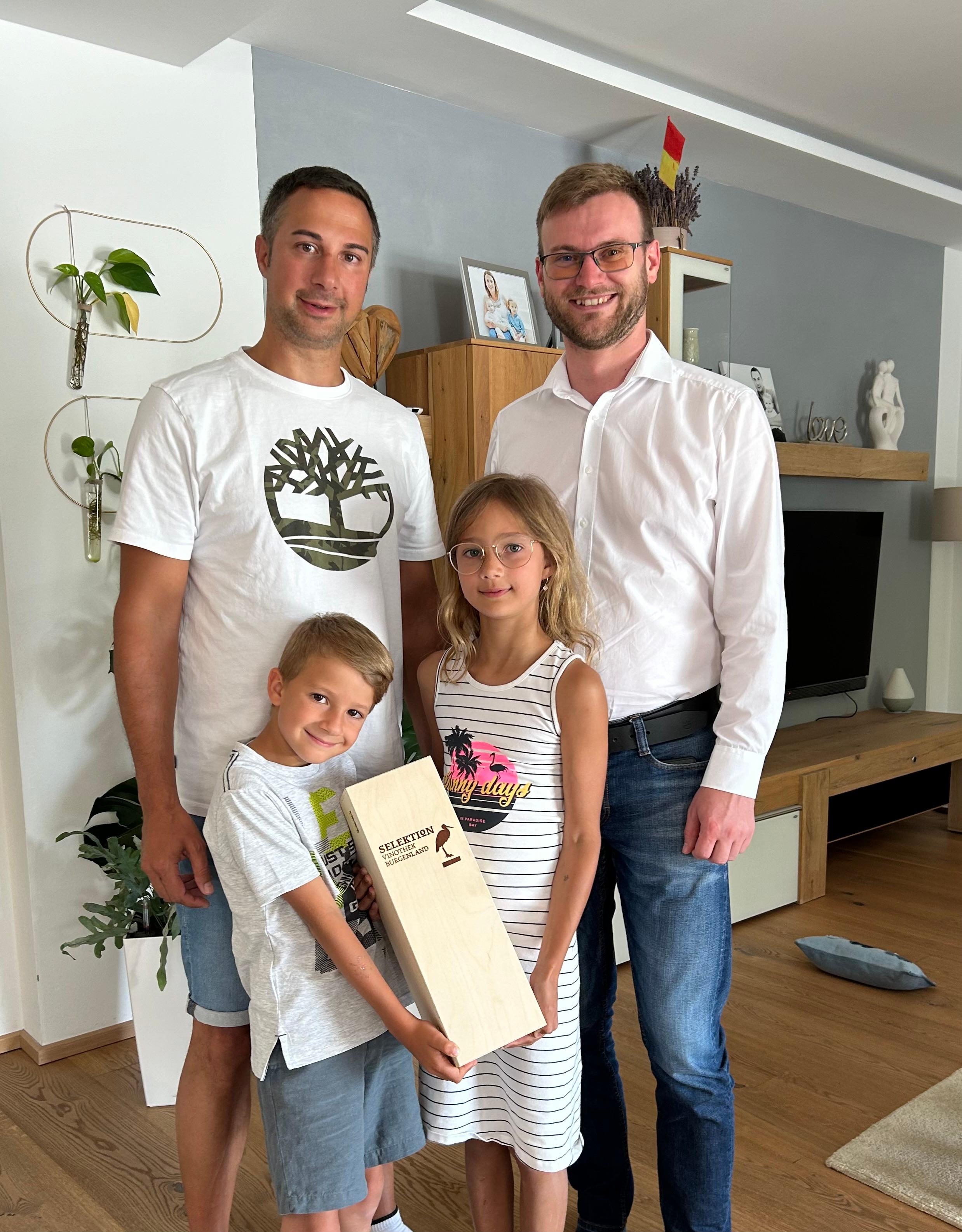 Cristian Sodl mit den Kindern Julian und Katharina sowie Hubert Bleich (Obmann der Taxiinnung) (v. l.). // Foto © WKB