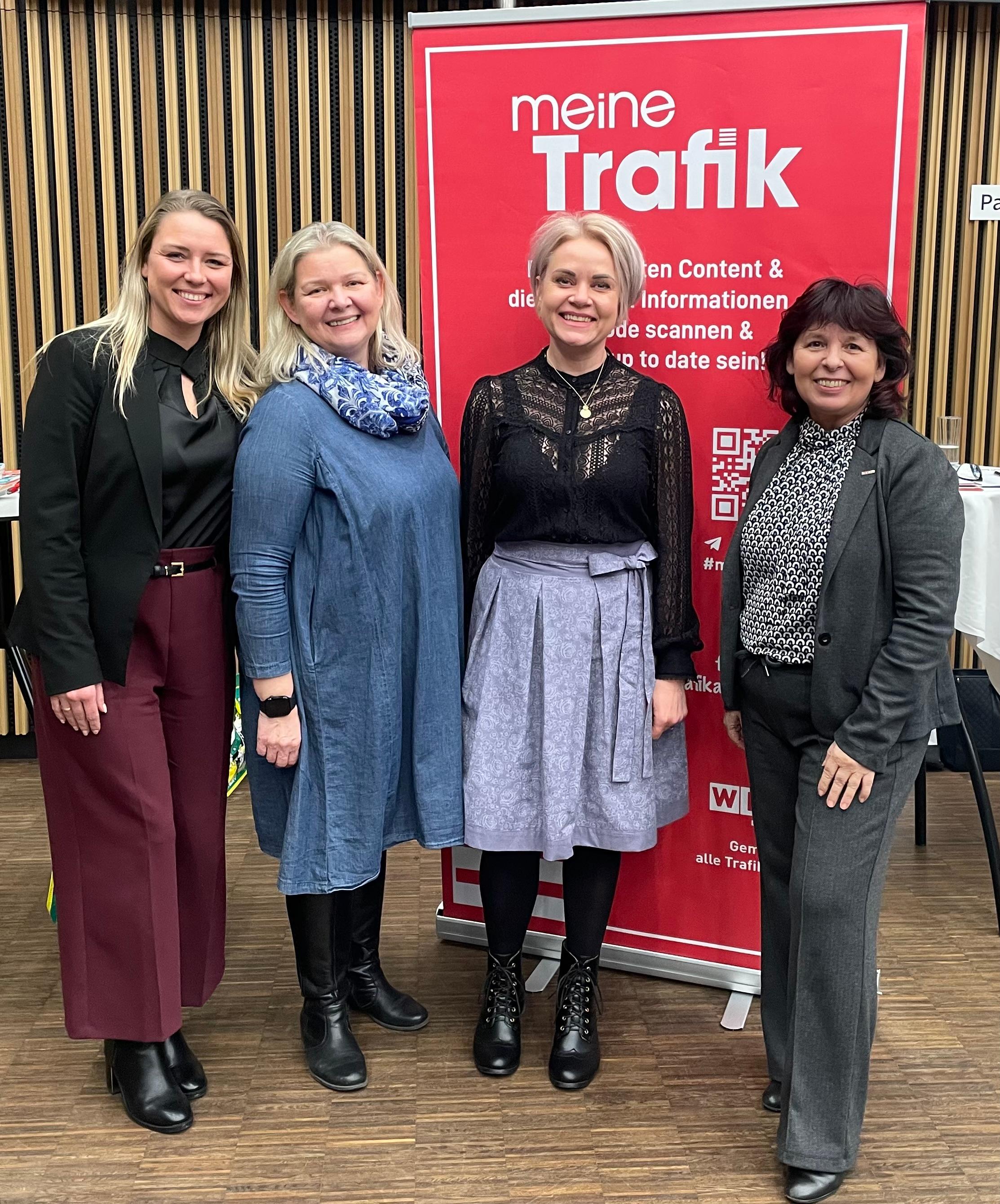 Eva-Maria Kalleitner (l.) und Sabine Recher (2. v. r.) (Österreichische Lotterien) mit Angelika Bauer (Obfrau der Tabaktrafikanten) und Martina Rauchbauer (r.) (Fachgruppengeschäftsführerin) . // Foto ©WKB