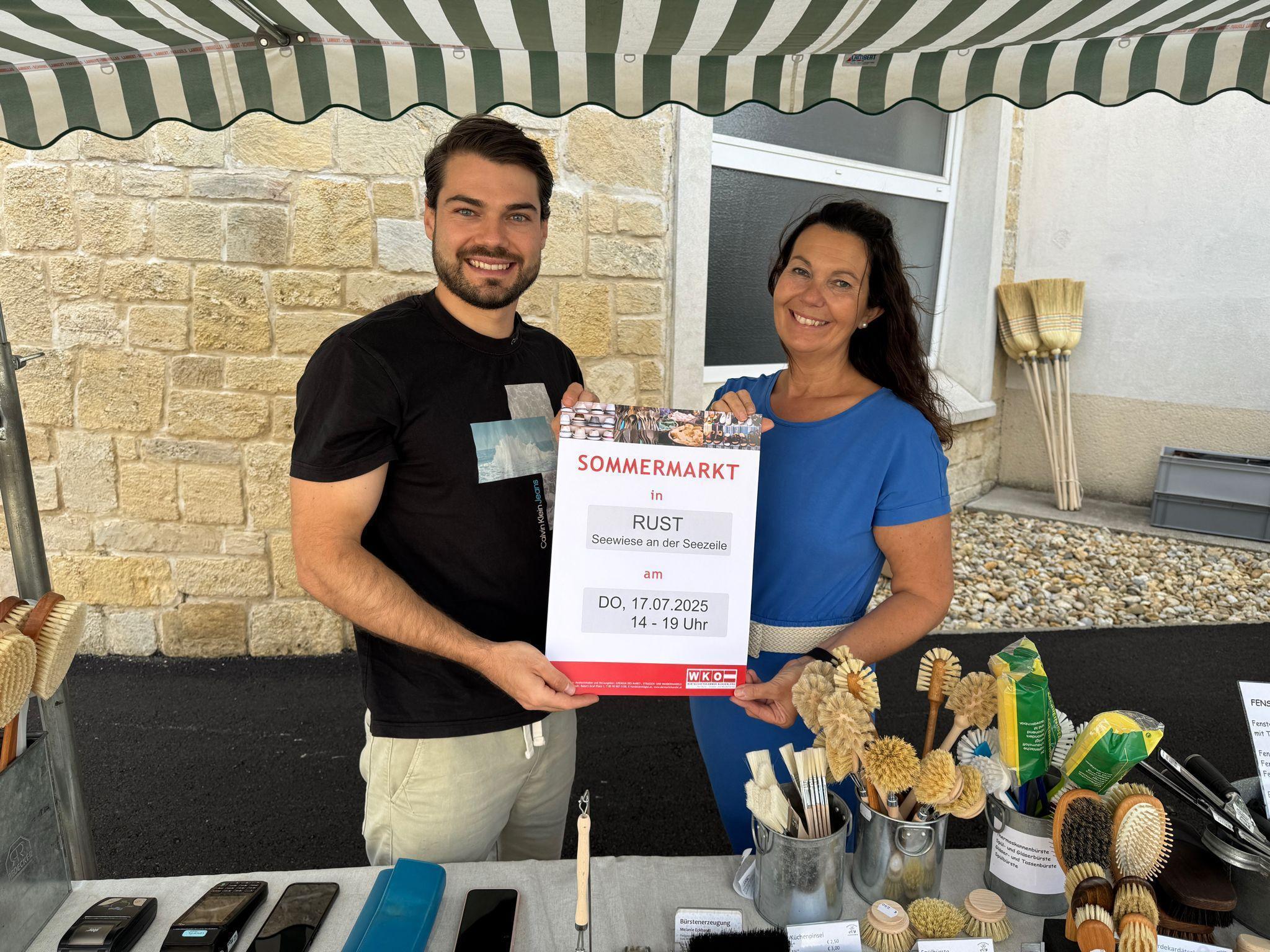 Vorfreude auf den Sommermarkt in Rust herrscht auch bei Melanie Eckhardt (Obfrau das Markt-, Straßen- und Wanderhandels) und Sohn Alexander (JW). // Foto © WKB