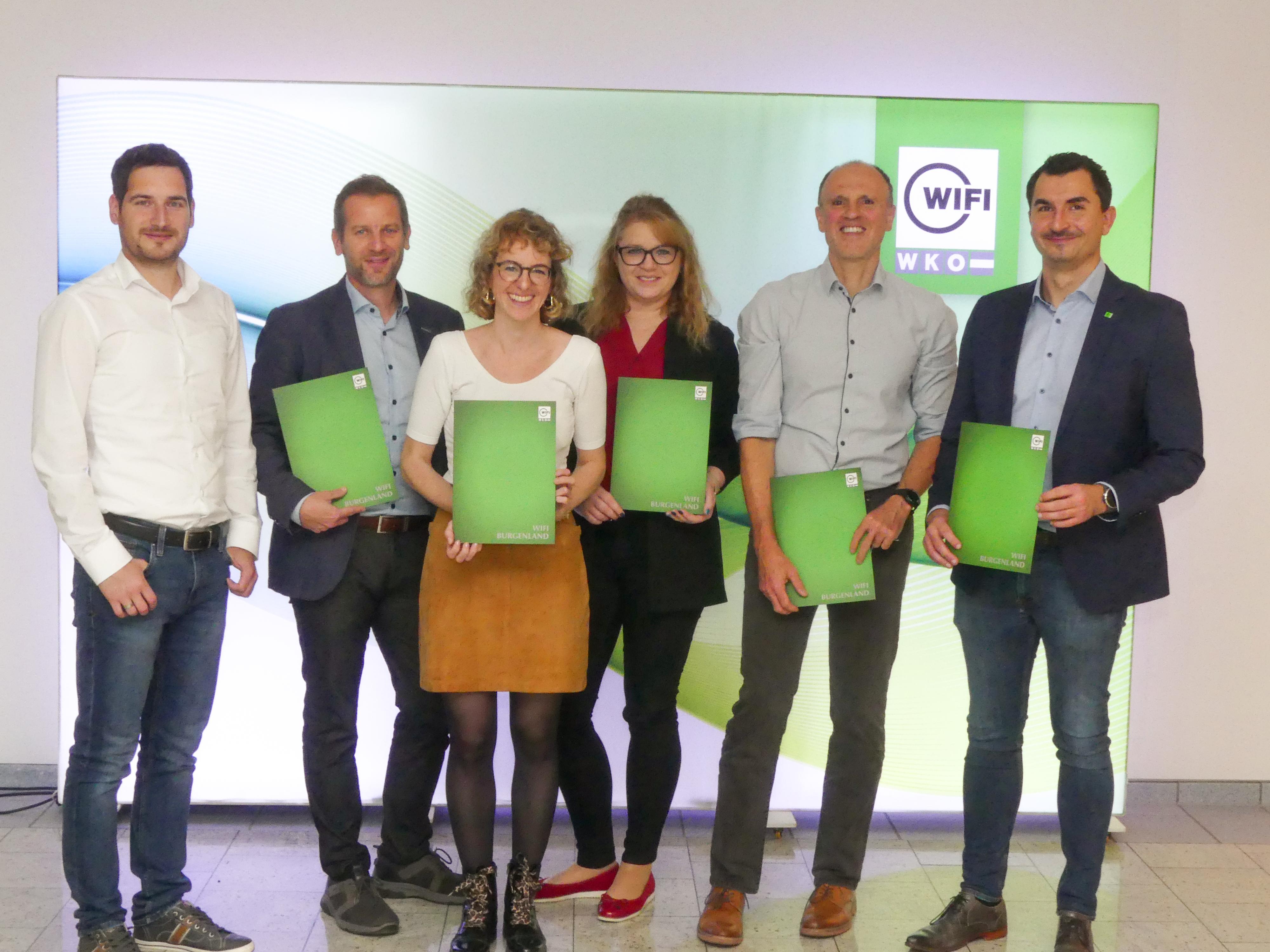 Erfolgreiche Lehrgangs-Premiere im Vorjahr: WIFI-Produktmanager Gerald Munzenrieder mit den Absolventen Harald Wohnhas (Fehring), Iris Adrowitzer (Wien), Barbara Funka-Viola (Leitring), Gerhard Pulfer (Klosterneuburg) und Michael Babits (Großwarasdorf) (v. l.). // Foto © WKB