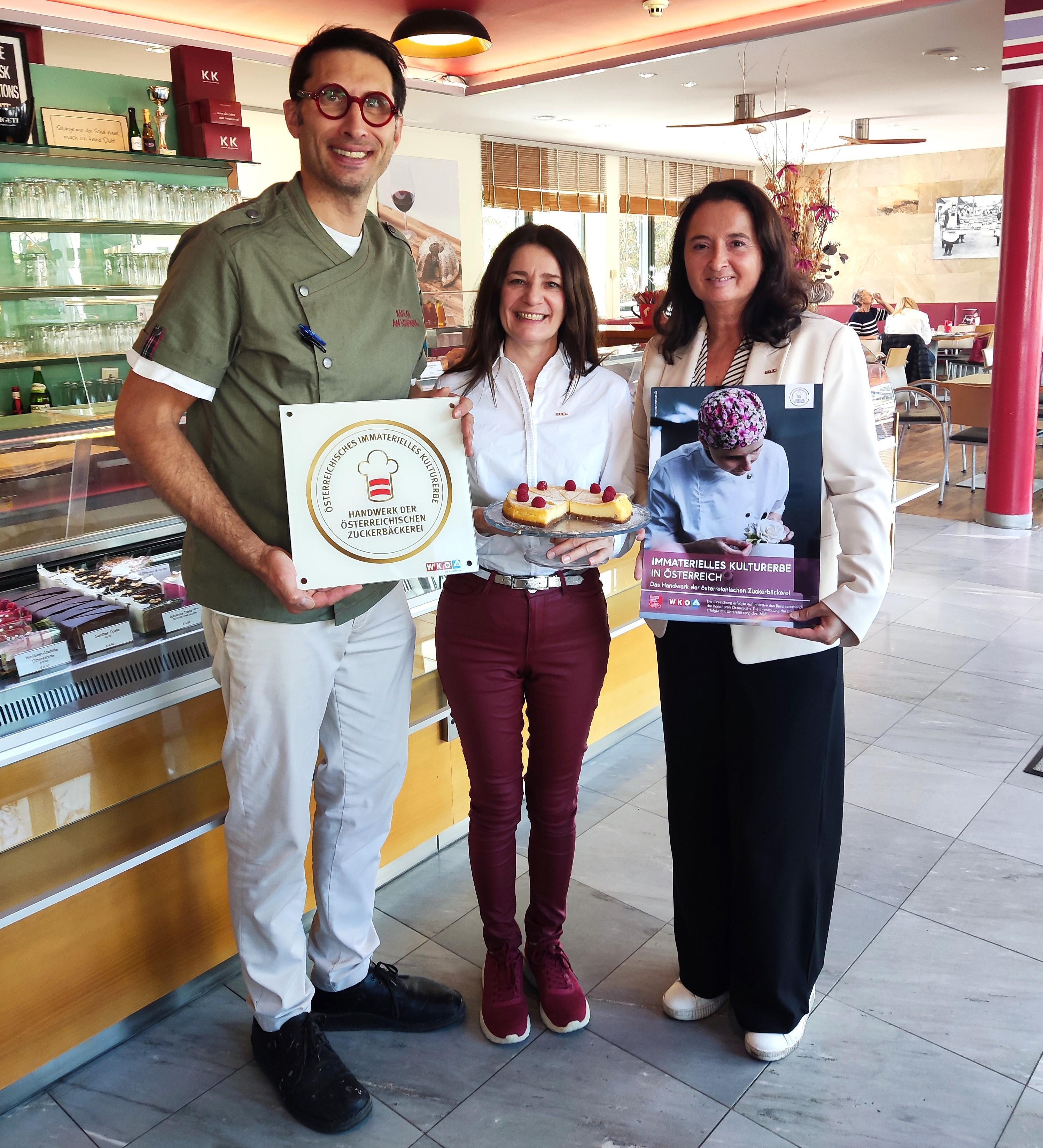 Süße Nachrichten für Naschkatzen: Die UNESCO-Kommission hat das Handwerk der Zuckerbäckerei in die Liste des immateriellen Kulturerbes in Österreich aufgenommen. Um diese Auszeichnung sichtbar zu machen, wurde ein Schild kreiert, das von der Landesinnung der Wirtschaftskammer nun auch an Meister-Konditoren im Land überreicht wurde.