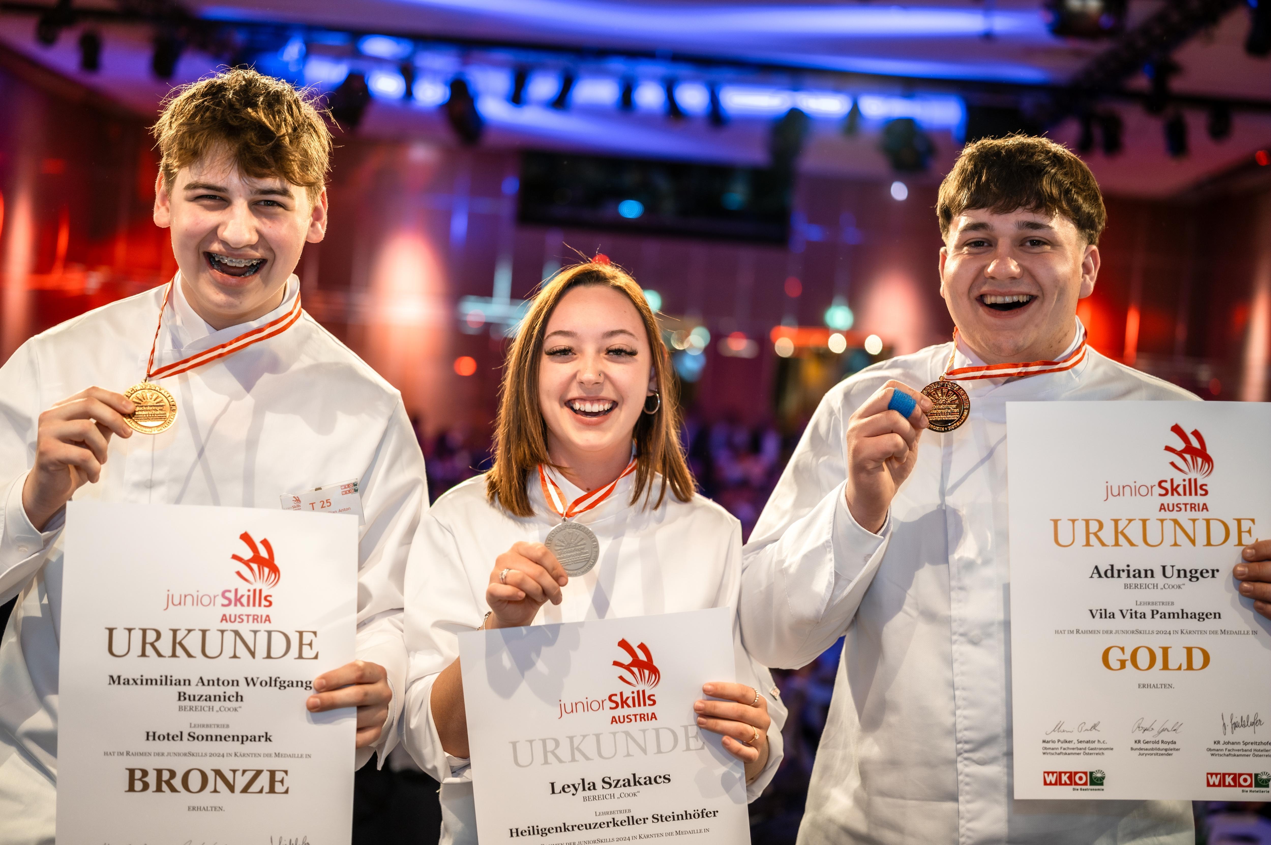Die burgenländischen Medaillengewinner - Küche: Maximilian Buzanich (Bronze), Leyla Szakacs (Silber) und Adrian Unger (Gold) (v. l.). // Fotos © WK