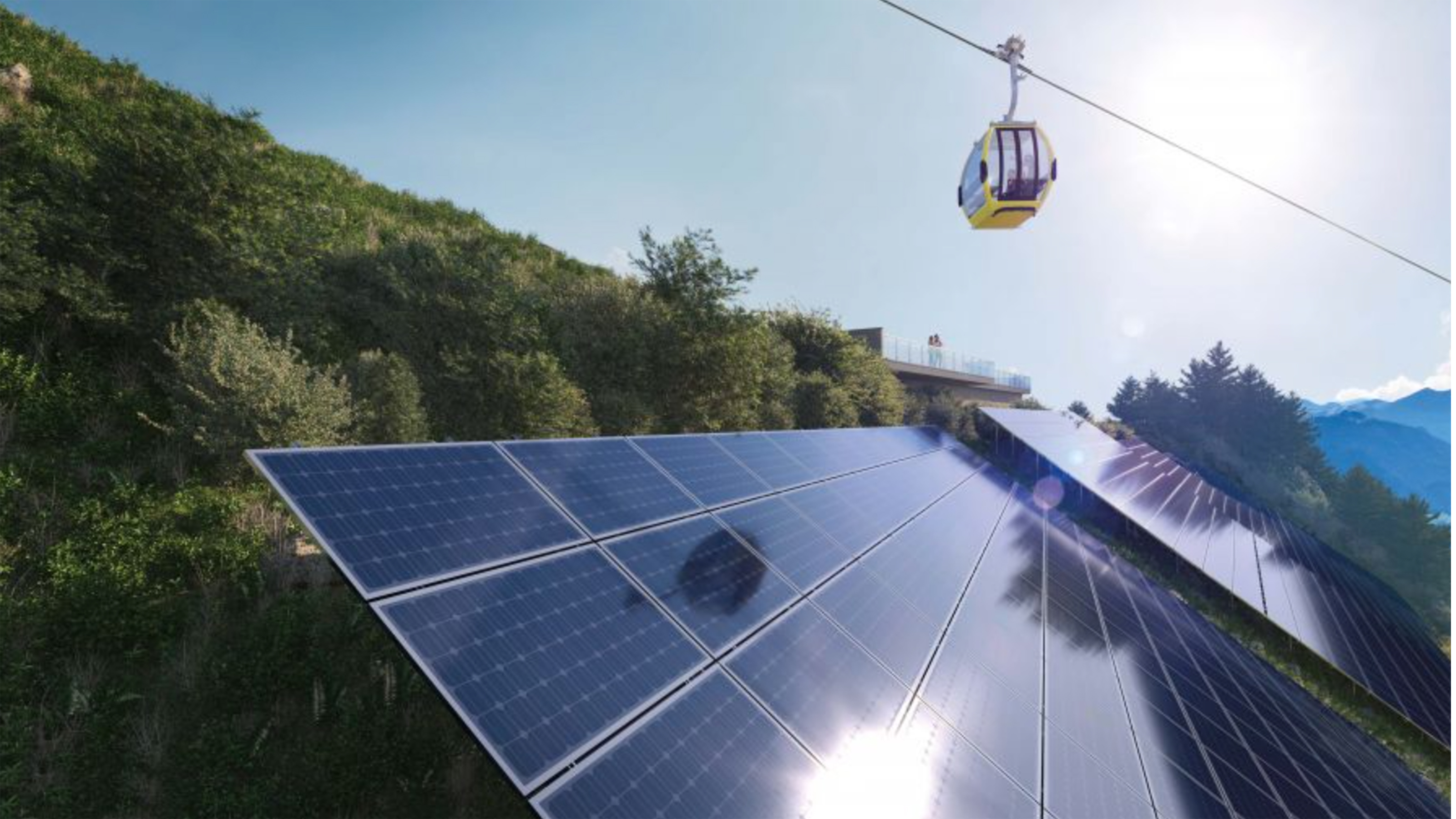 PV-Panele und eine Seilbahn