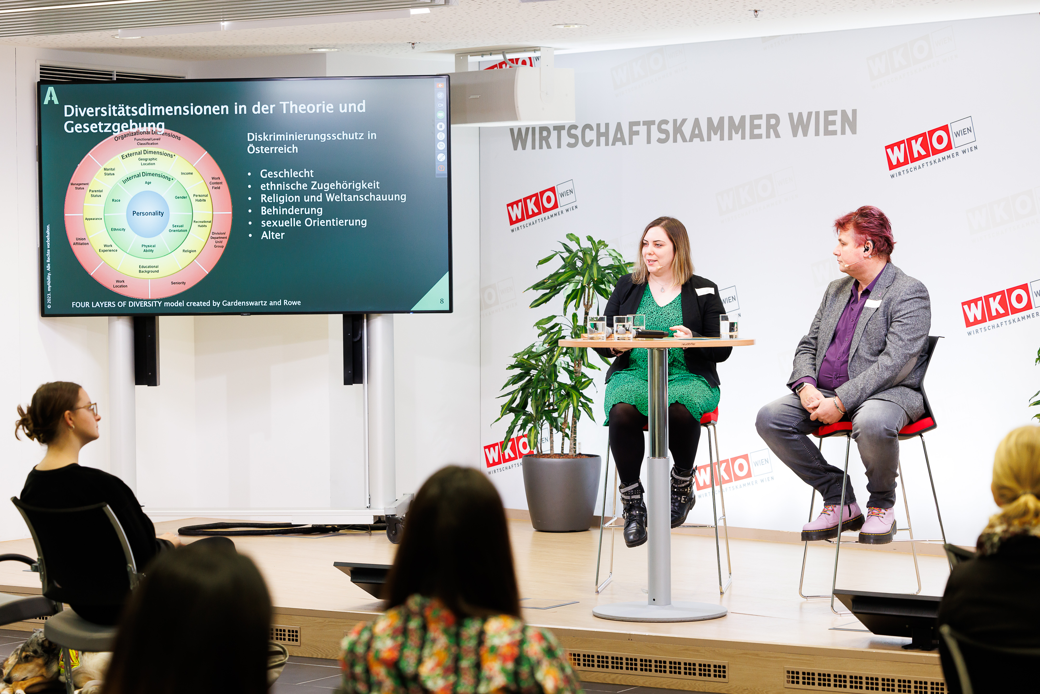 Im Zentrum stand diesmal die Frage wie man das Recruiting divers gestalten kann und welche Herausforderungen es dabei gibt. Aber auch die Erfolge und Vorteile, die eine diverse Belegschaft einem Unternehmen bringt, wurden thematisiert. Moderator Stefan Pauser führte durch die Veranstaltung und diskutierte mit den Gästen Julia Miller, MA (Billa AG) und Dr. Johannes Braith (CEO und Co Founder von Storebox), die Spanendes aus eigener Erfahrung berichten konnten.