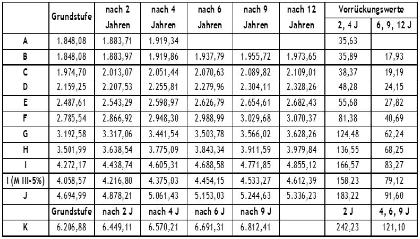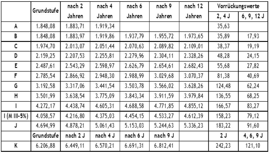 *) Auf Grundlage des KV-Abschlusses vom 13. November 2017, vgl. im Weiteren die mit ♦ gekennzeichneten Werte.