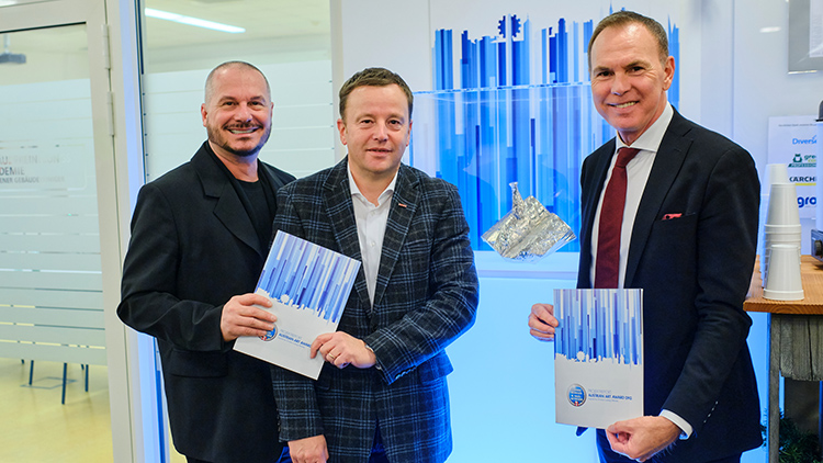 Gemeinsam mit Art Direktor Wolfgang Reichl berichtete BZO KommR Gerhard Komarek über den Stand des Austrian Art Awards und die geplante Öffentlichkeitsarbeit. Eine Replik des Originalawards wird in der Gebäudereinigungsakademie bis auf weiters ausgestellt.