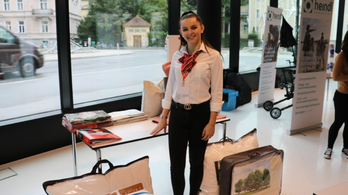 In maximal zehnminütigen Verkaufsgesprächen wurden die 17 Handelslehrlinge in Bezug auf Beratung und Service, Warenpräsentation, Argumentation, Verkaufsabschluss aber auch die Behandlung von Einwänden der Kund:innen unter die Lupe genommen. Neben dem deutschsprachigen Kund:innen beim Verkaufsgespräch galt es zeitgleich auch eine englischsprachige Kundin bestmöglich zu beraten.