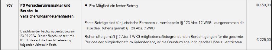 Nachstehend der aktuelle Grundumlagen-Beschluss der Fachgruppe Versicherungsmakler und Berater, gültig von 1.1. bis 31.12.2025: