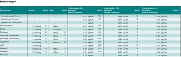 Der Faktor für indirekte Emissionen von Strom ist im Schnitt für das Stromnetz Österreich mit 0,182 kg CO2eq/kWh angegeben.
