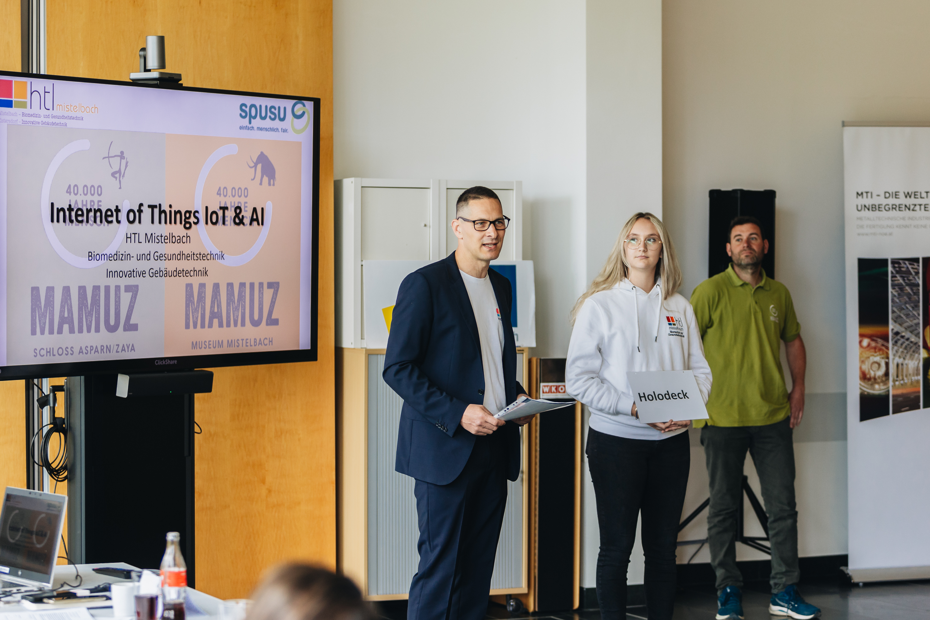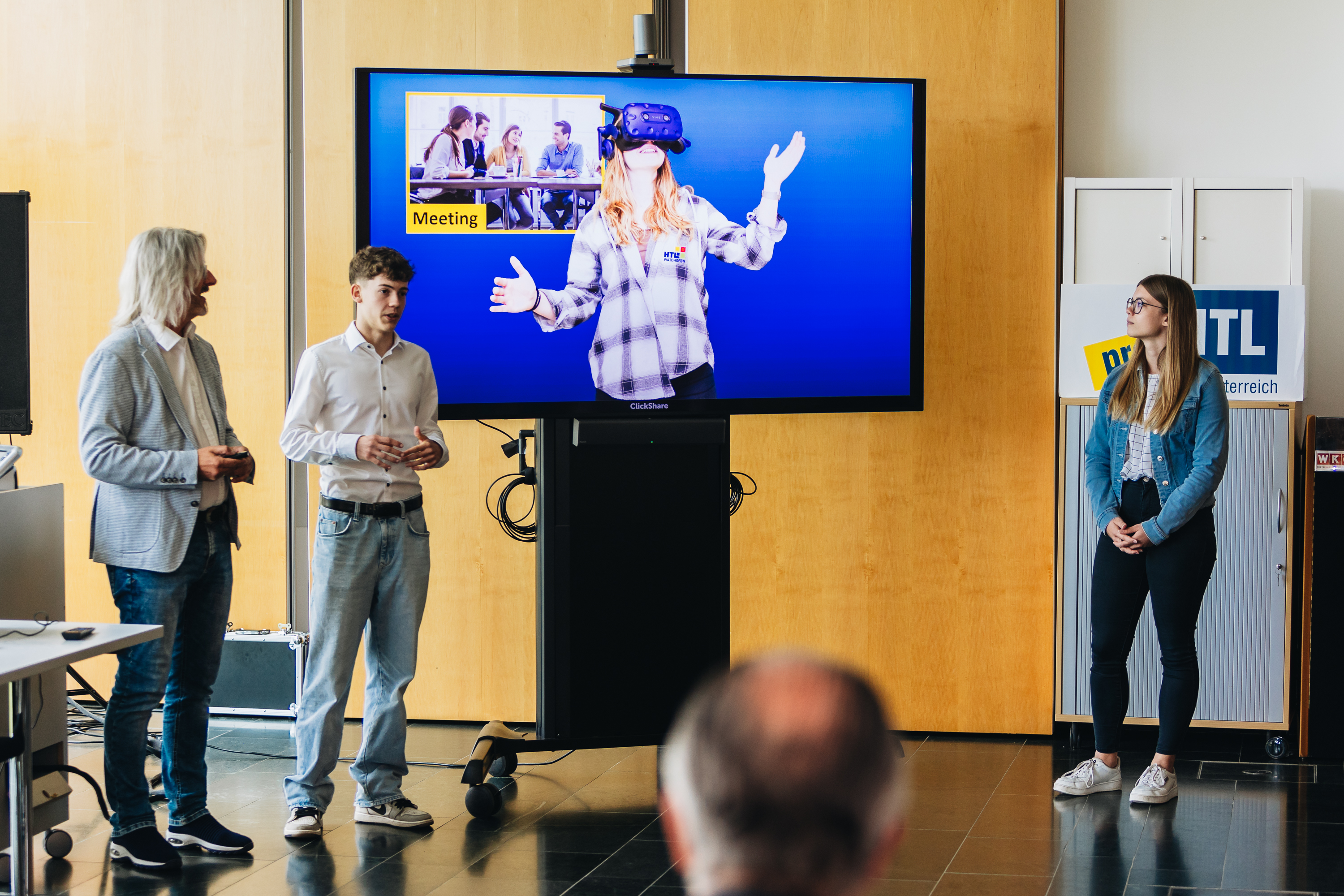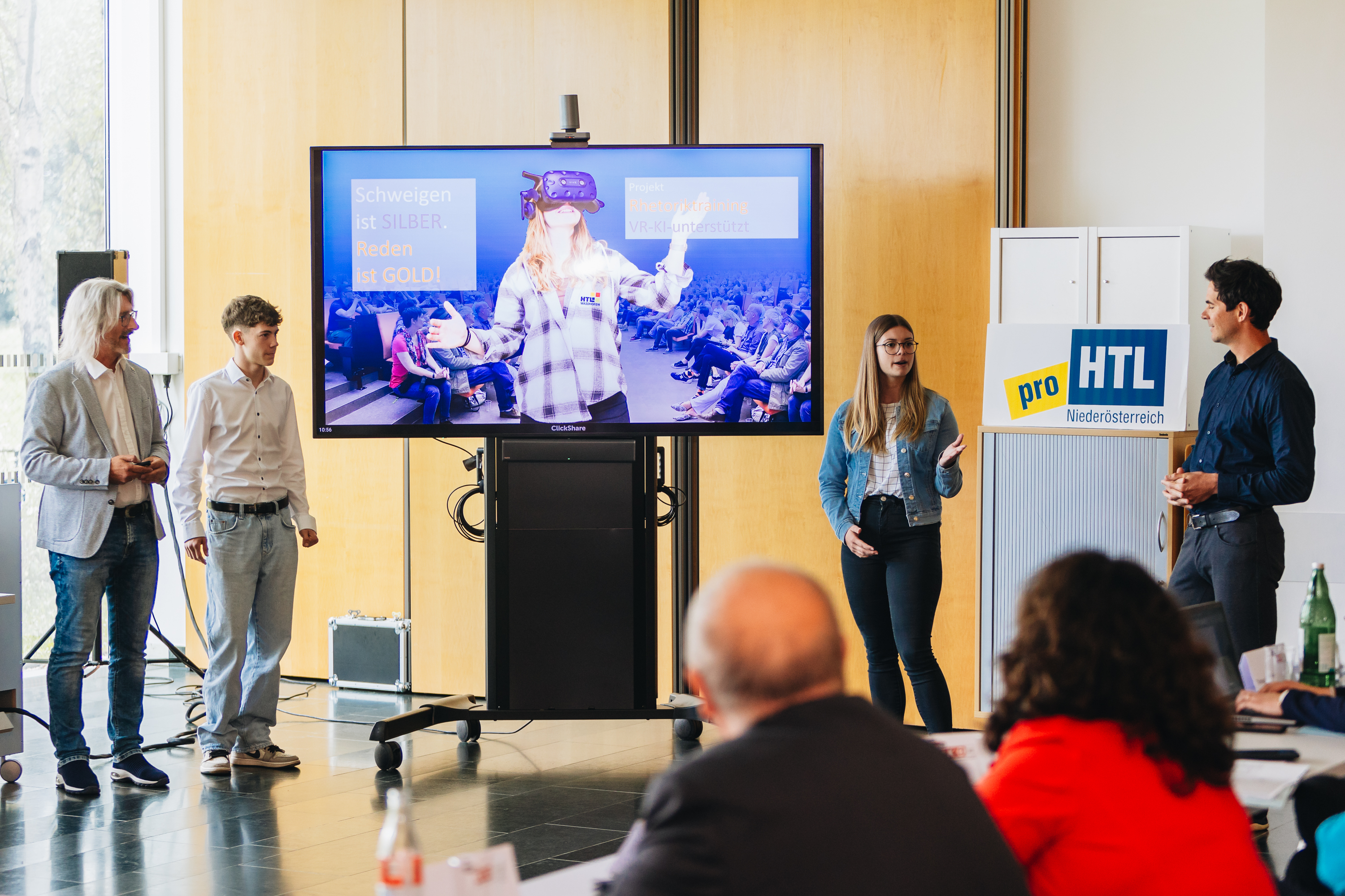Sonderpreis für die HTL Waidhofen an der Ybbs (10.000 Euro): Das Projekt „Schweigen ist Silber, Reden ist Gold“ ermöglicht Präsentationstraining mit Unterstützung durch Virtuelle Realität und Künstliche Intelligenz mithilfe von Virtual Reality-Anwendungen.