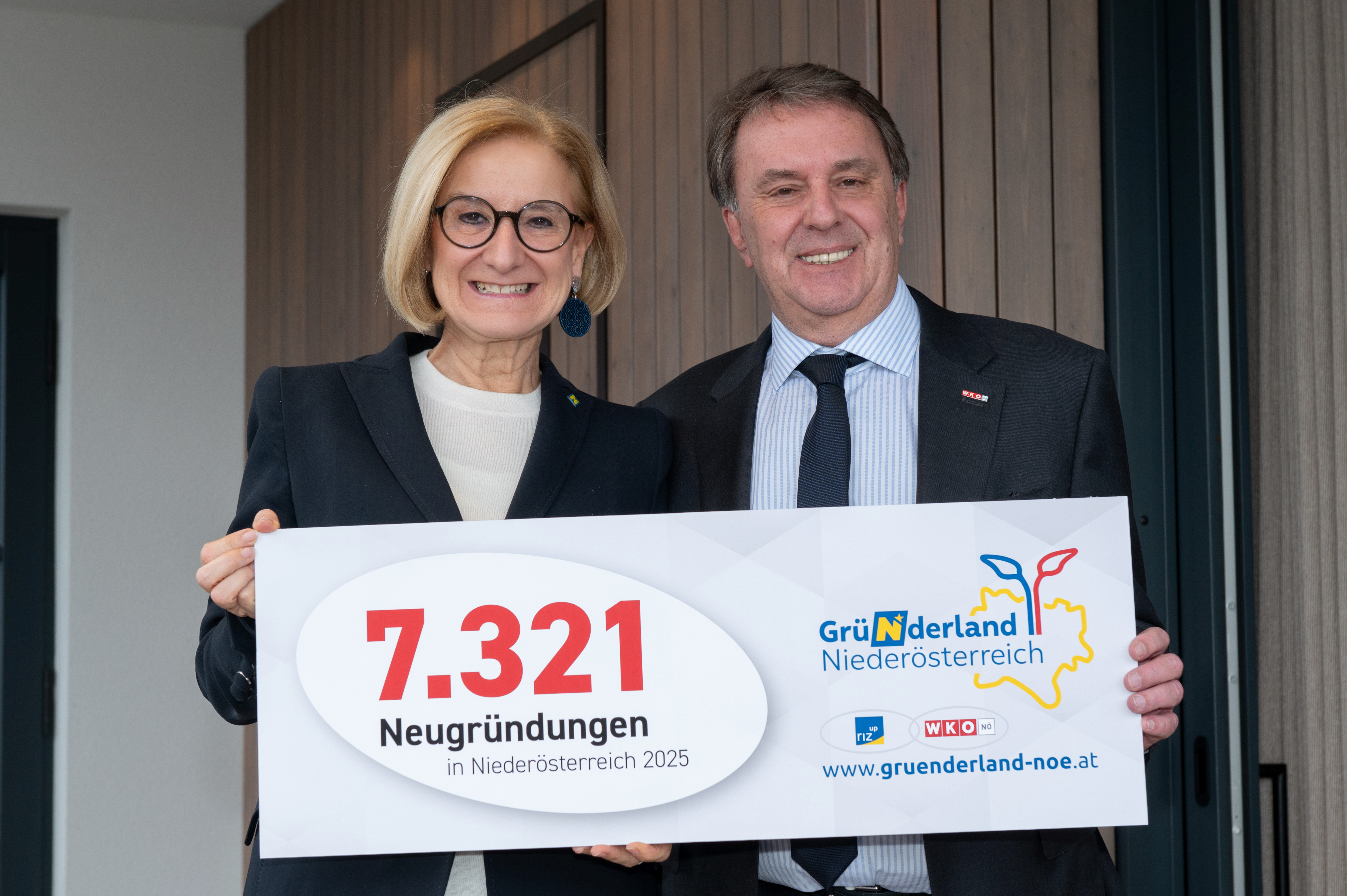 Niederösterreichs Gründerinnen und Gründer zündeten ein weiteres Mal den Turbo: Die vorläufigen Gründungszahlen für 2025 zeigen einen Anstieg der Gründungen in unserem Bundesland auf 7.321 neue Unternehmen (Anm.: alle Zahlen ohne Personenbetreuer). 2024 waren es 6.581 Neugründungen gewesen, was ein Plus von elf Prozent für 2025 bedeutet. „Unsere Gründerinnen und Gründern haben eine Kraft entwickelt, die den ganzen Wirtschaftsstandort NÖ nach vorne bringt. Voller Stolz blicken wir auf die beeindruckende Gründungslandschaft in Niederösterreich“, betonen Landeshauptfrau Johanna Mikl-Leitner und WKNÖ-Präsident Wolfgang Ecker.