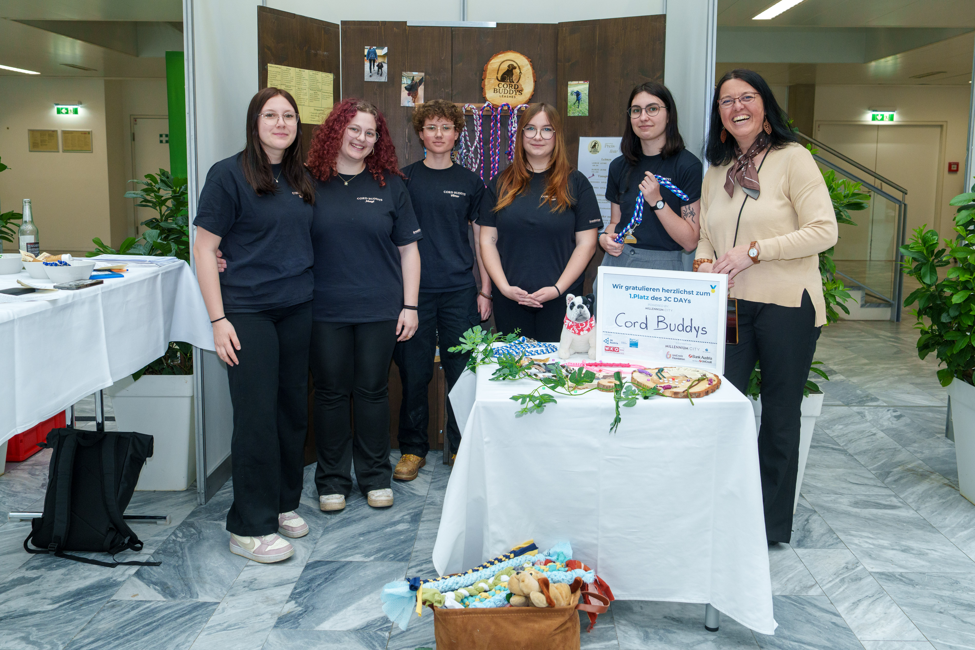 „Als Tierliebhaber möchten wir Tiere stilvoll und sicher durchs Leben begleiten. Die Idee für Paracord entstand, weil es ein besonders robustes, reißfestes und langlebiges Material ist, das bis heute auch im Fallschirmsport verwendet wird. Unsere Hunde- und Katzenspielzeuge fertigen wir zudem aus alten, nicht mehr verwendeten Stoffen – nachhaltig, kreativ und mit viel Herz“, erklärten die Schüler der Junior Company Cord Buddys der LFS Hollabrunn.