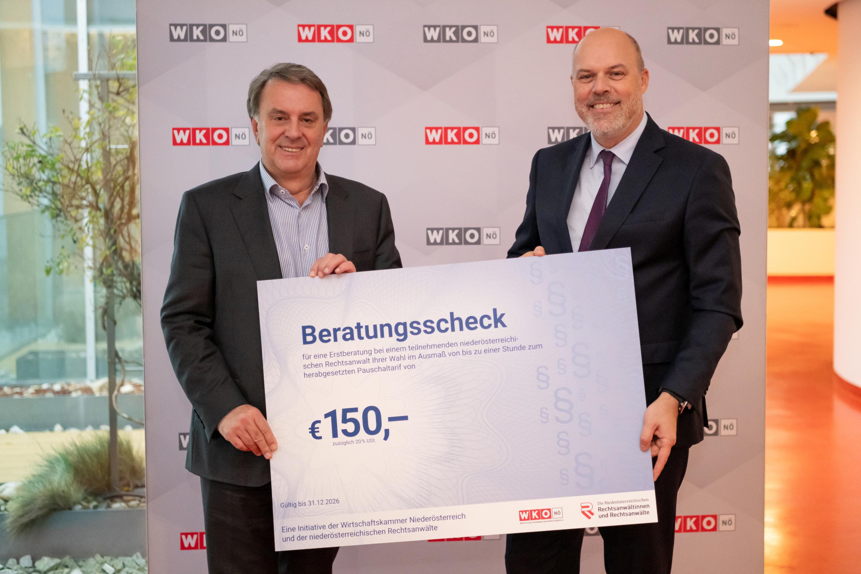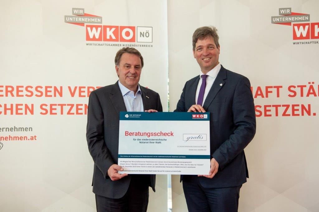 Die Wirtschaftskammer Niederösterreich (WKNÖ) bietet ihren Mitgliedern beide Beratungsschecks, den Rechtsanwaltsscheck und den Notariatsscheck, bis 31. Dezember 2026 an.