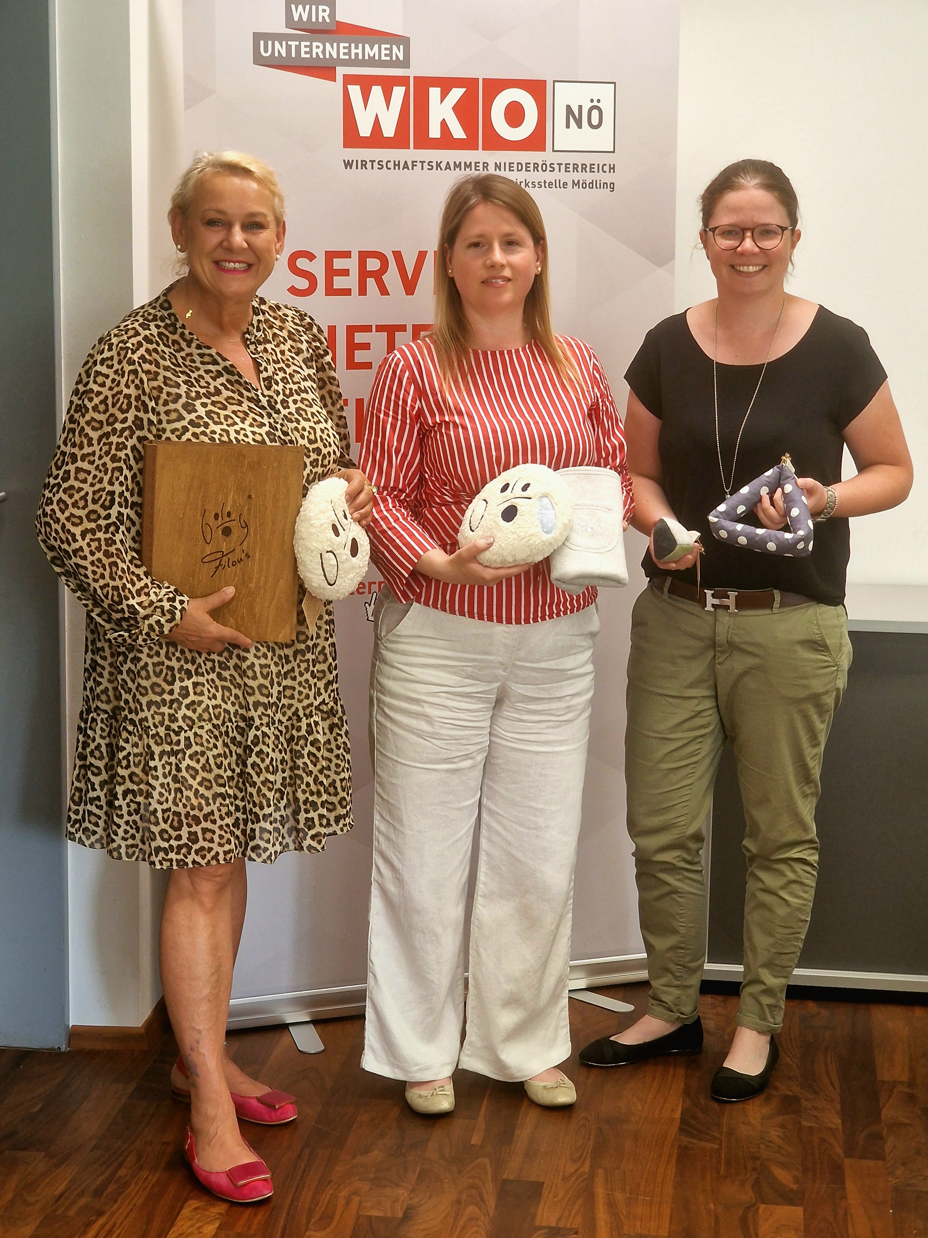 FIW-Bezirksvorsitzende Elisabeth Dorner und WK-Mödling Bezirksstellenleiterin Andrea Lautermüller gratulierten Annemarie Filous zum 10-jährigen Betriebsjubiläum.