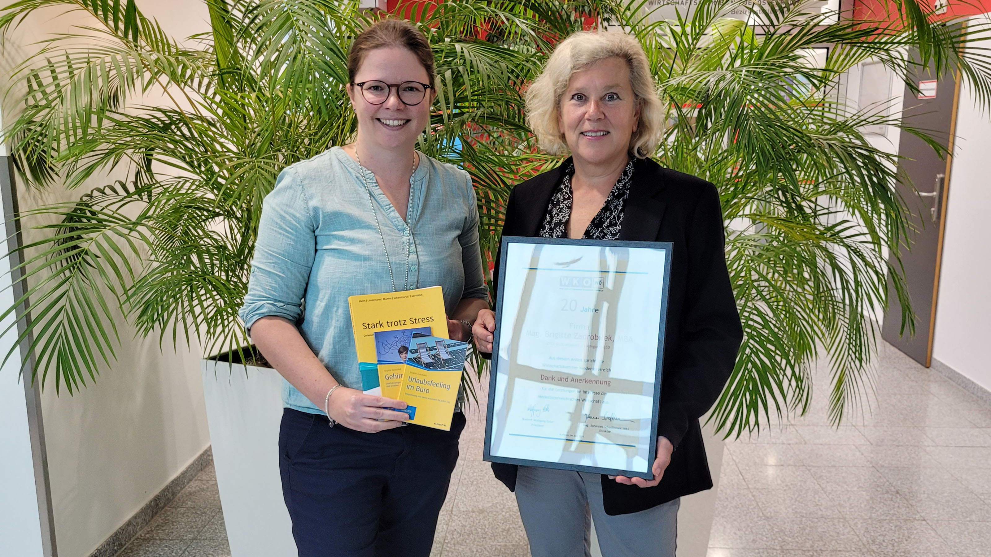 Brigitte Zadrobilek, eine Pionierin im Bereich Stressmanagement und Führungskräfteentwicklung, feiert ihr 20-jähriges Jubiläum als erfolgreiche Unternehmerin. Mit ihrer Firma „stresscoach“ hat sie sich einen Namen gemacht und zahlreiche Kunden auf ihrem Weg zu einem gesünderen, stressfreien Leben begleitet. WK-Mödling Bezirksstellenleiterin Andrea Lautermüller gratulierte und blickte gemeinsam mit der ambitionierten Unternehmerin in die Vergangenheit sowie die Zukunft.