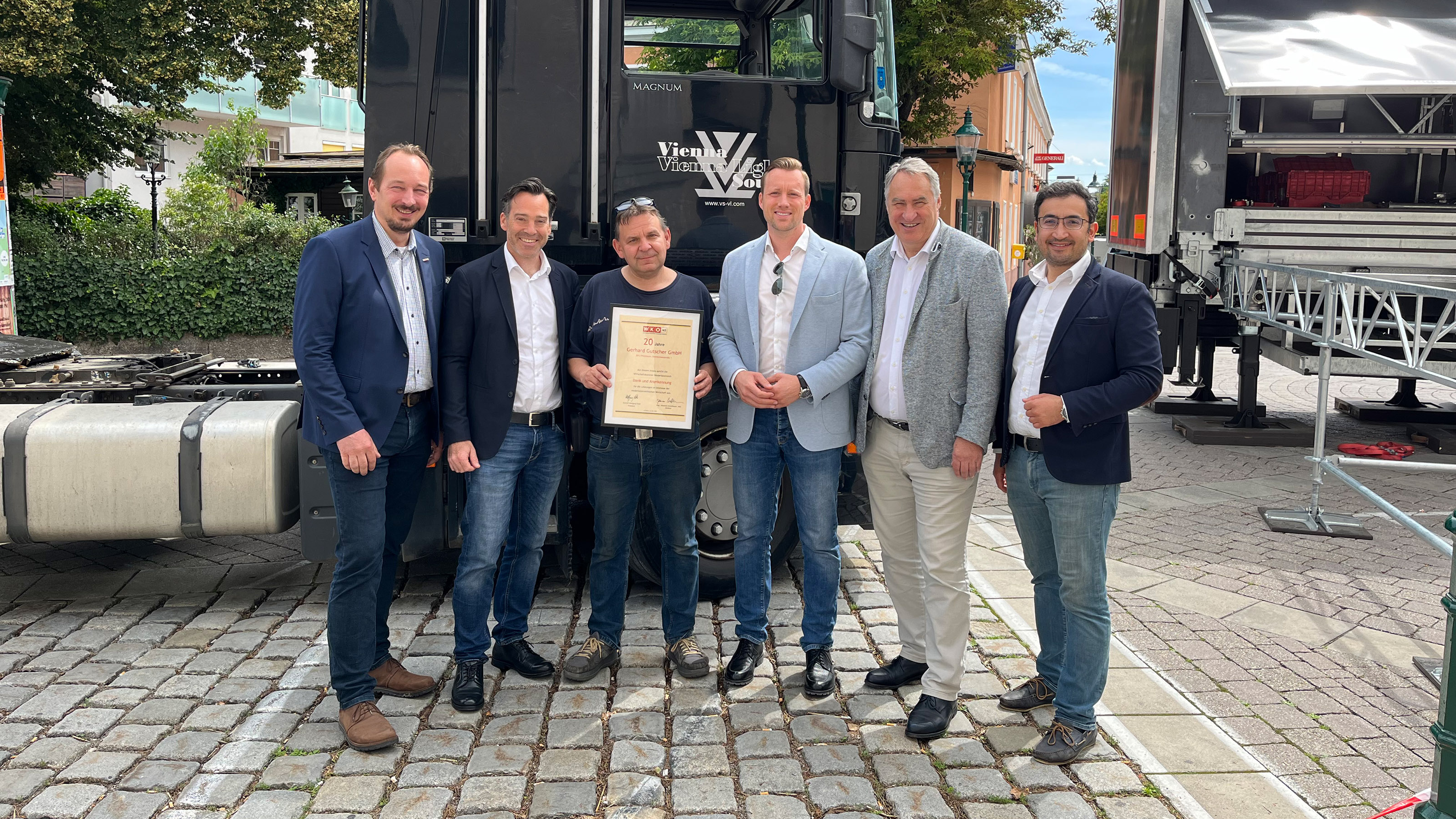 Seit 20 Jahren wird die Gerhard Gutscher GmbH „Vienna Sound Vienna Light“ erfolgreich in Pressbaum geführt. „Wir greifen auf über 35jährige Erfahrung im Bereich Veranstaltungs- und Eventtechnik“, so Inhaber Gerhard Gutscher. Vom Aufbau der Bühne bis hin zur optimalen Licht- und Tontechnik, Videowalls und vieles mehr bietet Gerhard Gutscher mit seinem Team an. Zum Jubiläum gratulierten Bürgermeister Josef Schmidl-Haberleitner, Fachvertreter Alexander Brozek, Außenstellenobmann Andreas Kirnberger, Ausschussmitglied Stefan Melzer und Außenstellenleiter Ramazan Serttas und wünschten weiterhin viel Erfolg