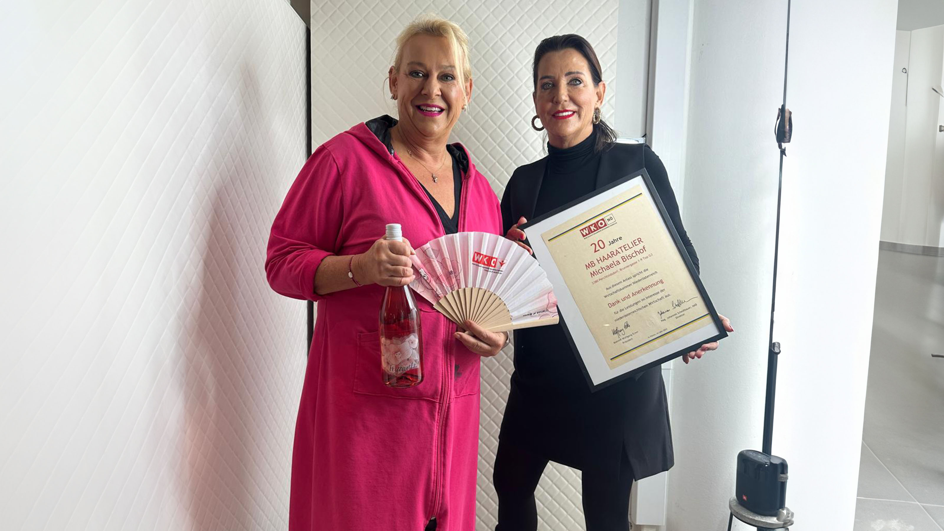 FIW Bezirksvertreterin Elisabeth Dorner gratulierte Michaela Bischof zum 20-jährigen Firmenjubiläum.