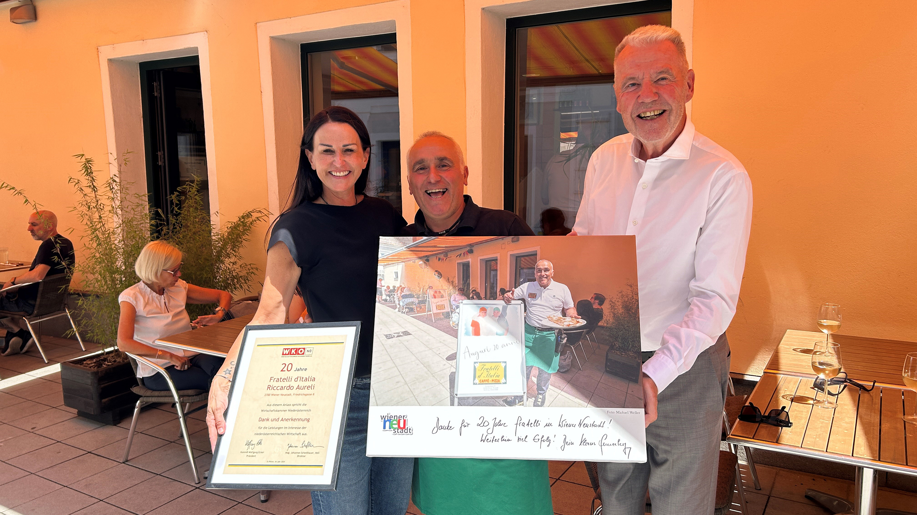 Als regionale Institution und kulinarisches Highlight ist die Pizzeria Fratelli seit zwei Jahrzehnten ein fester Bestandteil unserer Gemeinschaft. Anlässlich dieses Meilensteins überreichten wir eine Ehrenurkunde an Inhaber Riccardo Aureli: "Ein herzliches Dankeschön an alle, die uns in den letzten 20 Jahren begleitet haben - auf die nächsten 20 Jahre voller Genuss und guter Gesellschaft.