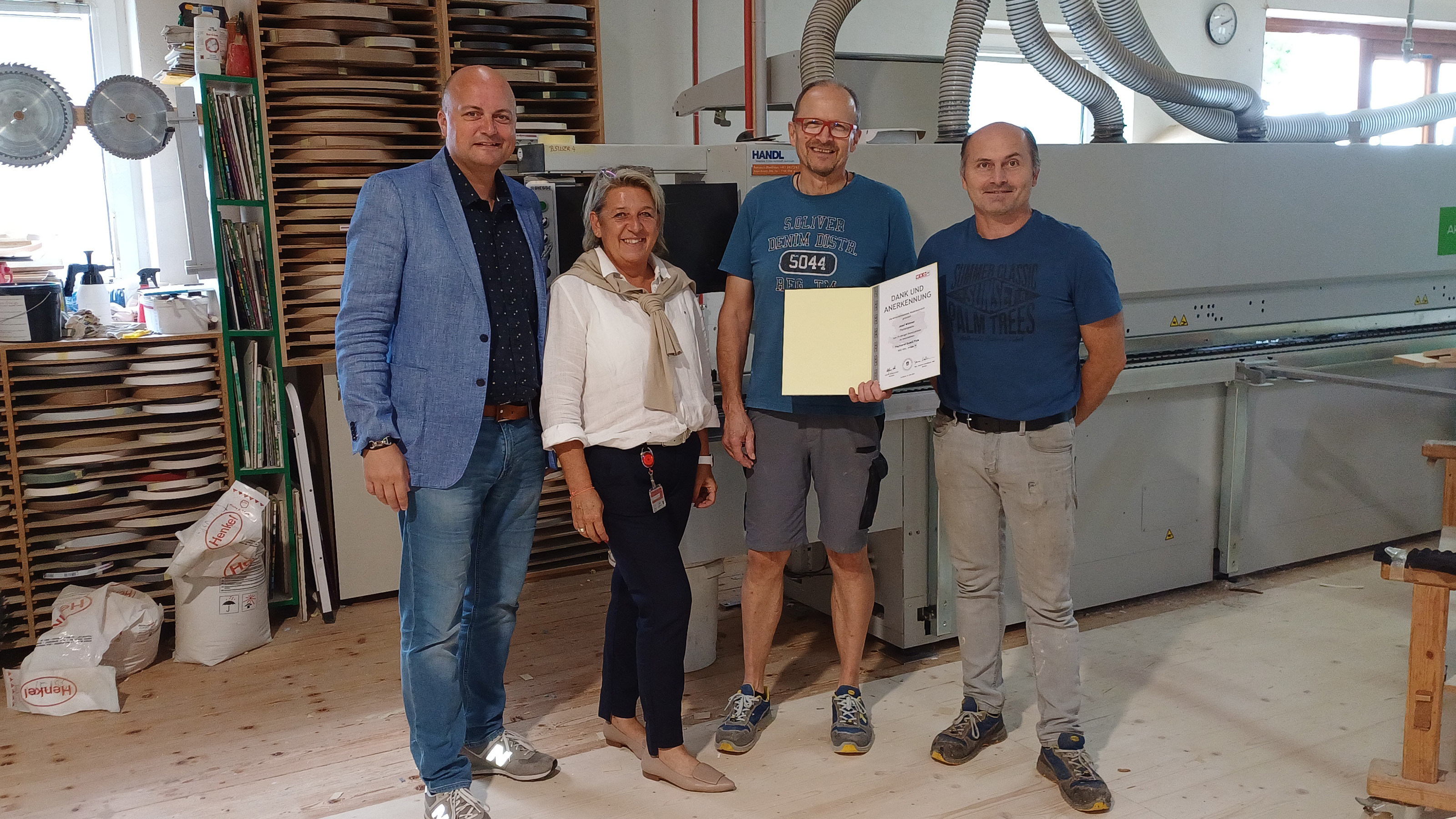 Die Tischlerei Fida ehrte Josef Wimmer für die langjährige Betriebszugehörigkeit (25 Jahre).