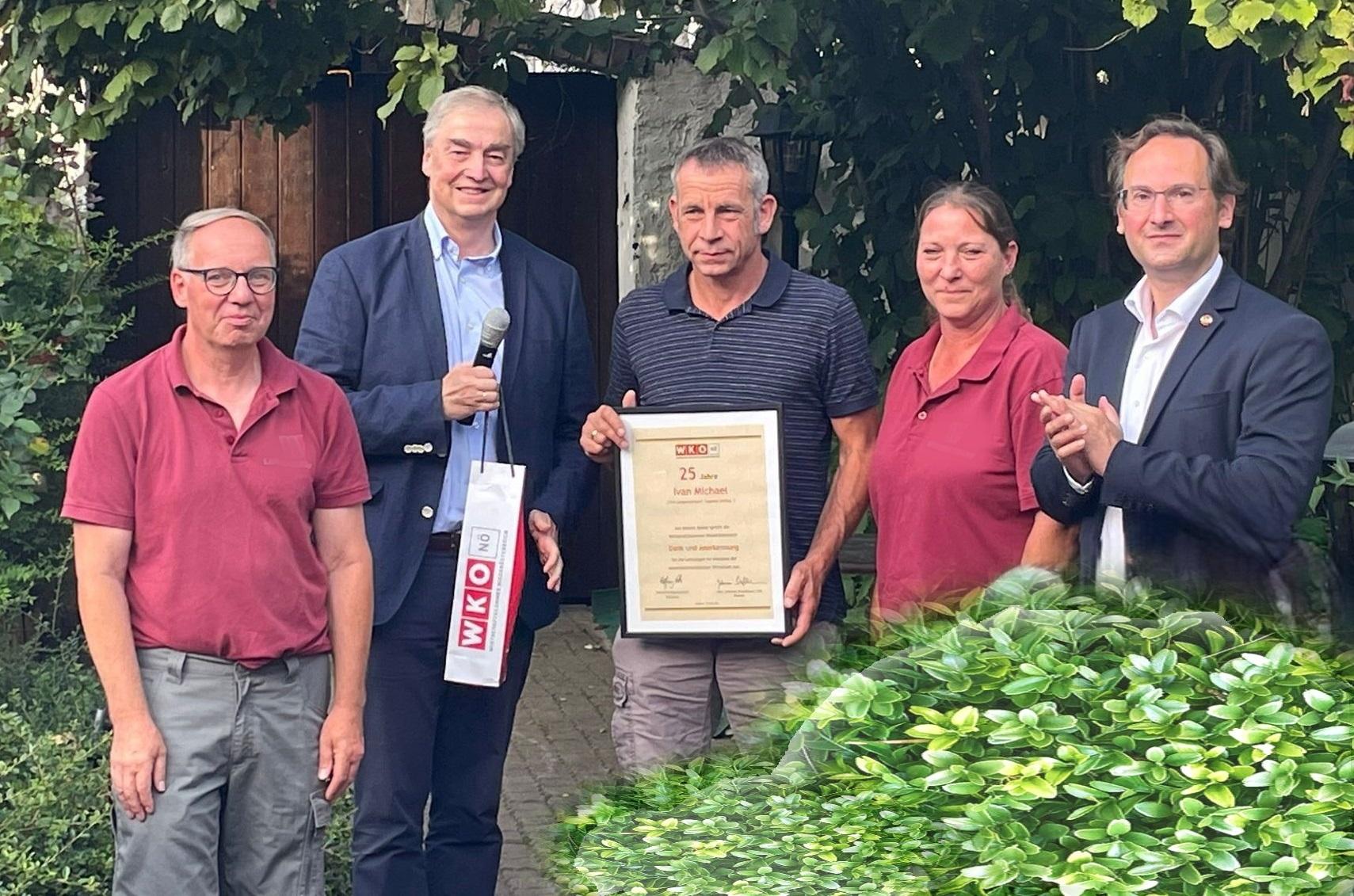 Beim Sommerfest der Wirtschaft aber wurde gefeiert und Michael Ivan erhielt eine Dank- und Anerkennungsurkunde für die Verdienste rund um die niederösterreichische Wirtschaft von Vizepräsident Christian Moser und Bezirksstellenobmann Andreas Minnich überreicht. Alle Gäste wünschten dem Unternehmerehepaar viel Power für die nächsten 25 Jahre!