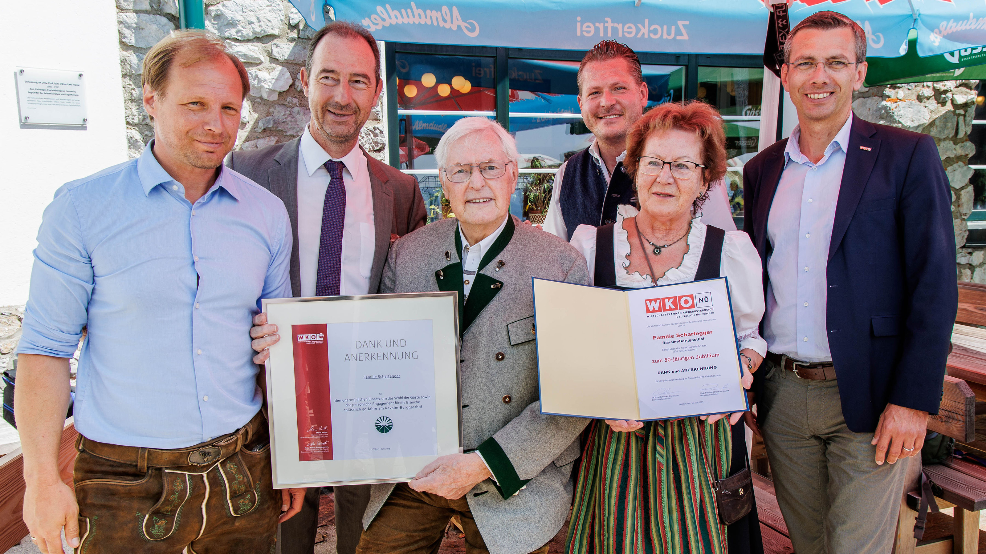 Die Familie Scharfegger betreibt seit 50 Jahren den Raxalm-Berggasthof am Rax-Plateau in den Wiener Alpen in Niederösterreich. Dieses runde Jubiläum wurde anlässlich eines Get-togethers am Rax-Plateau (26.06.) mit Medien, Partnern und Freunden des Hauses gefeiert. Getreu dem Motto „Fünf Jahrzehnte, fünf prägende Momente“ gab es für die rund 50 anwesenden Gäste einen Blick zurück – und nach vorne in die Zukunft des Tourismus auf der Raxalpe. Ein zentraler Bestandteil des umfangreichen Angebots ist die Rax-Seilbahn, die die Familie kontinuierlich vorangetrieben hat.