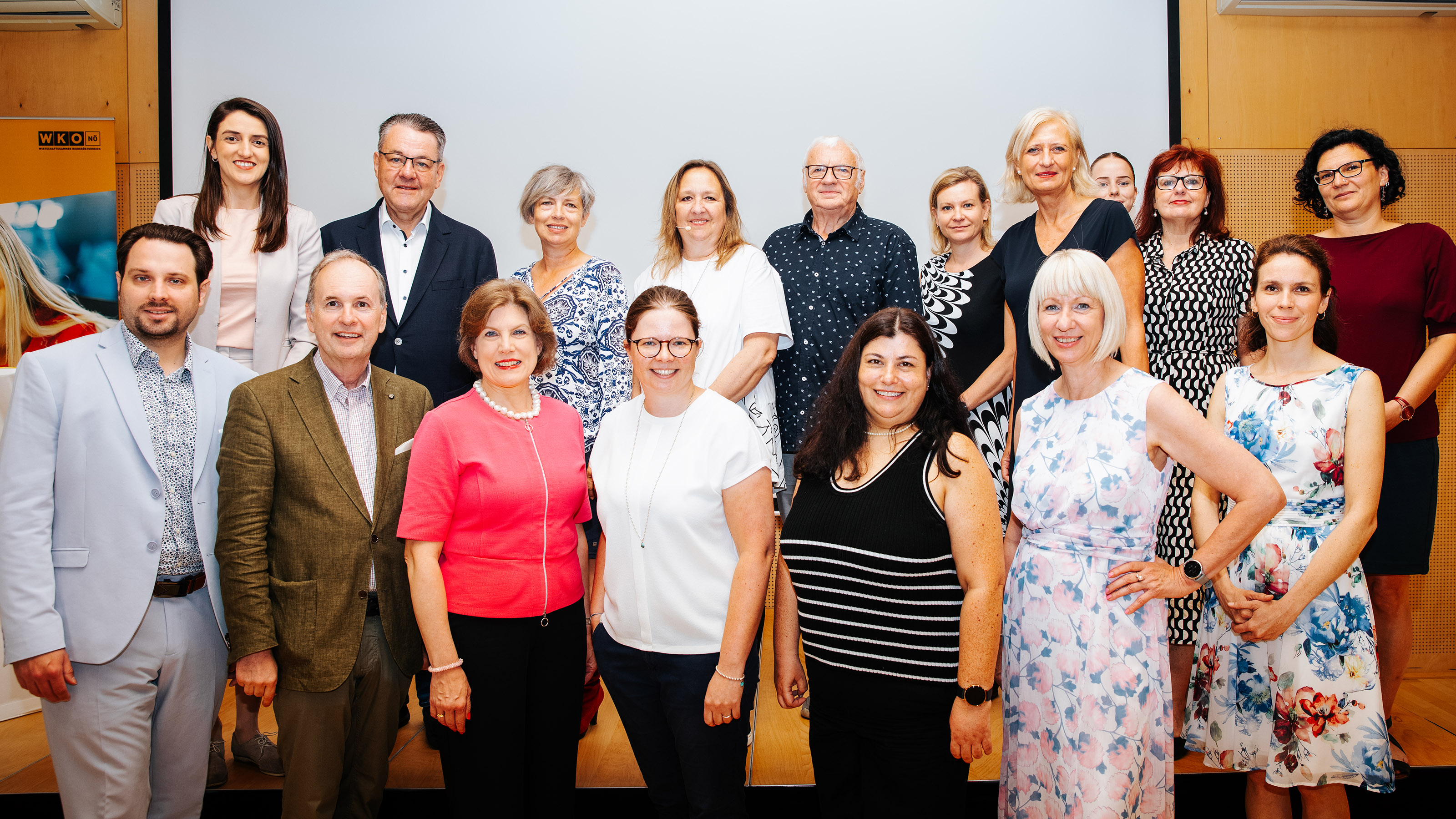 2. Reihe: Milica Markovic (JA Austria), Ernst Pokorny und Brigitte Hofer (MS Gumpoldskirchen), Andrea Strohmayer (Bank Austria), Erich Bettel, Christina Draxler (MS Brunn am Gebirge), Erika Klonner (MS Guntramsdorf), Fitore Adiyaman (Abteilung Bildung WKNÖ), Susanne Hönigsberger und Sabine Macho-Adam (IMS Hinterbrühl).