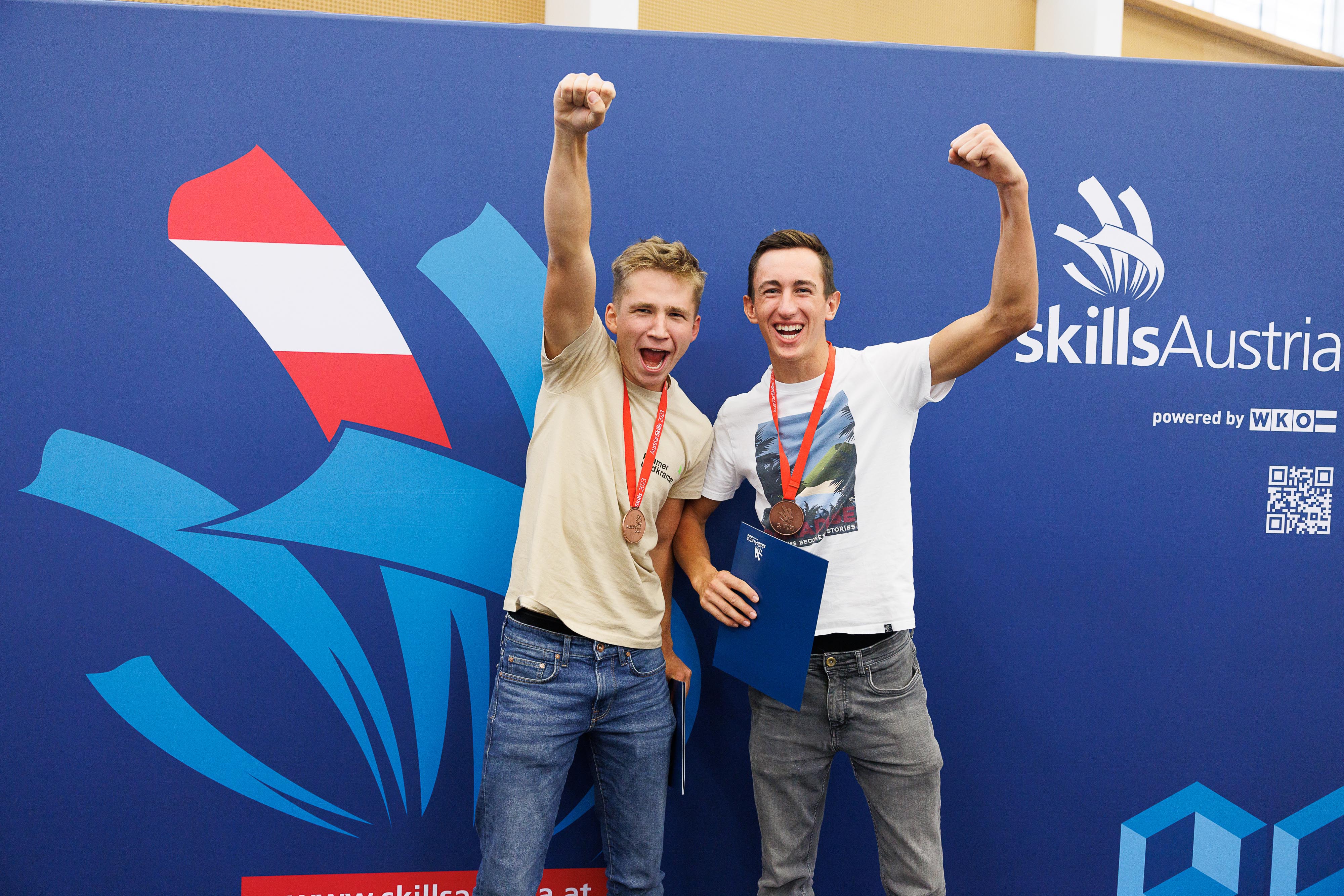 Vier Medaillen in drei Berufen: Großer Erfolg bei den Berufs-Staatsmeisterschaften, den AustrianSkills 2023 in Wels, für Niederösterreichs Fachkräfte. Gartengestalter Noah Knapp aus Tullnerbach (Kramer und Kramer, Zöfing bei Judenau) sicherte sich die Bronzemedaille, im Teambewerb mit Simon Berner (Galateich GmbH, Zwettl).