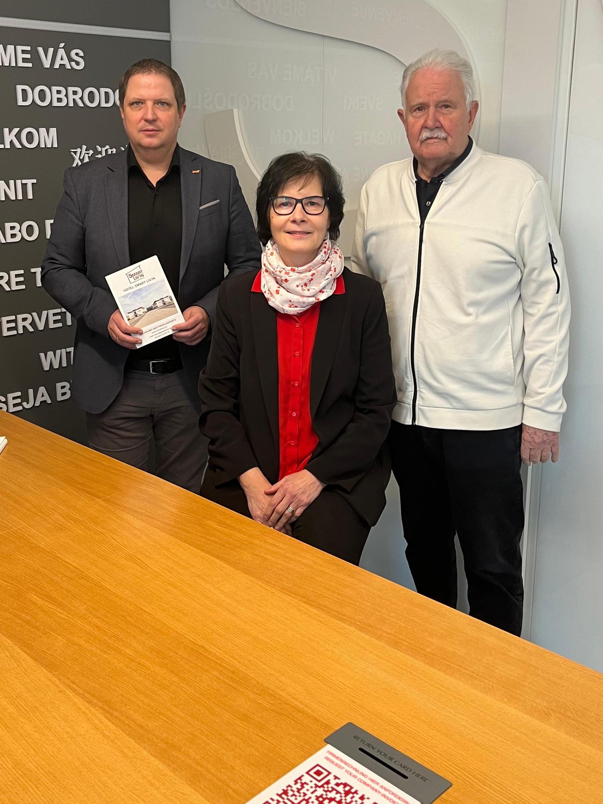 Bezirksstellenobmann Mario Burger (links) besuchte Ildiko Zoka und Anton Svoboda im Komfort im Hotel Smart Liv'in. Mit dem Self-Check-In am Hotelomat oder direkt am Smartphone ist das Hotelzimmer einfach und jederzeit beziehbar, untertags werden die Gäste persönlich begrüßt und informiert.