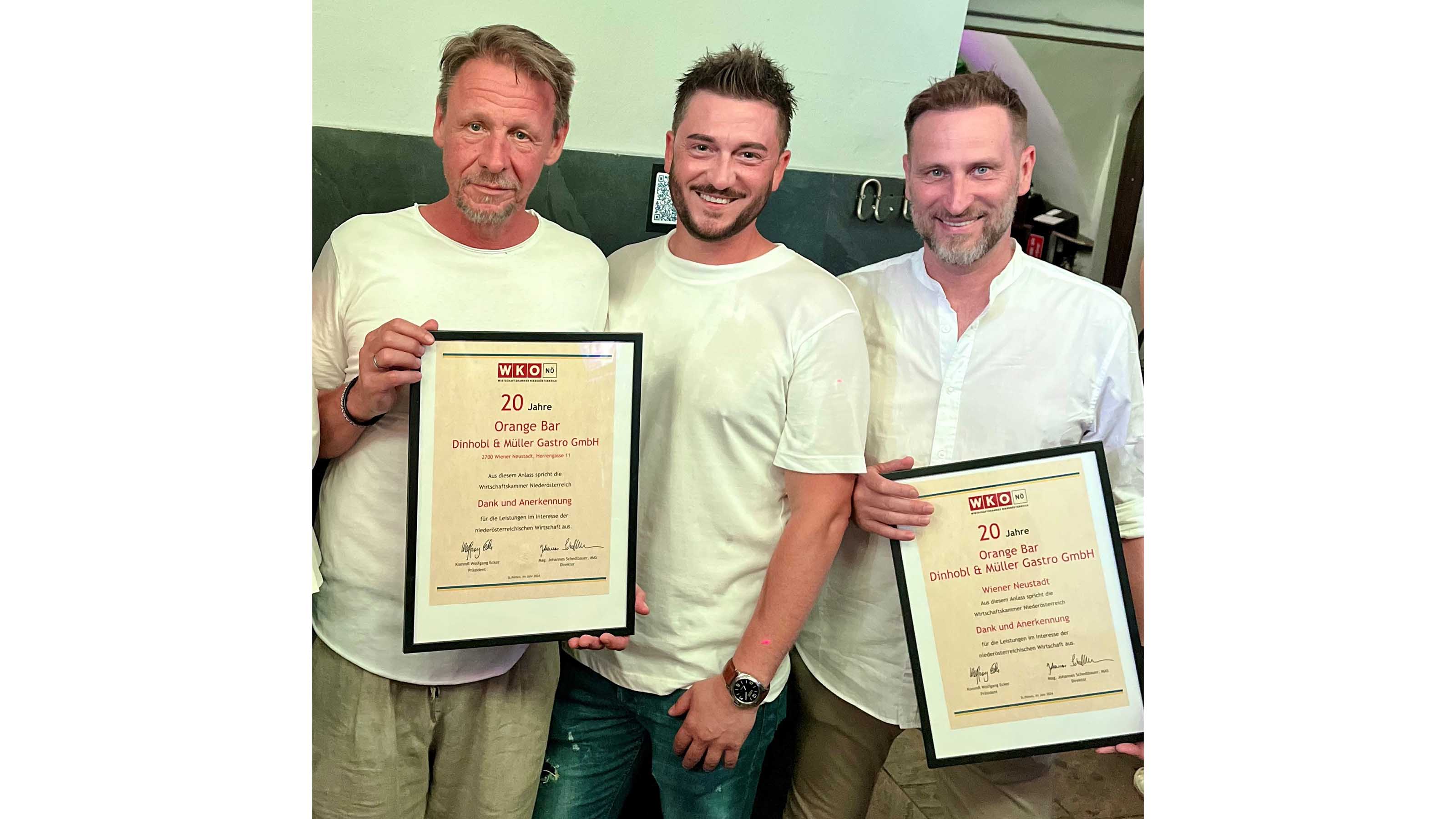 Am 12. Juli 2024 feierten zahlreiche Gäste, die die Orange Bar in der Herrengasse in Wiener Neustadt in den letzten zwei Jahrzehnten begleitet haben, das 20 Jahre Jubiläum mit den Betreibern Hannes Dinhobl und Gerald Müller.
